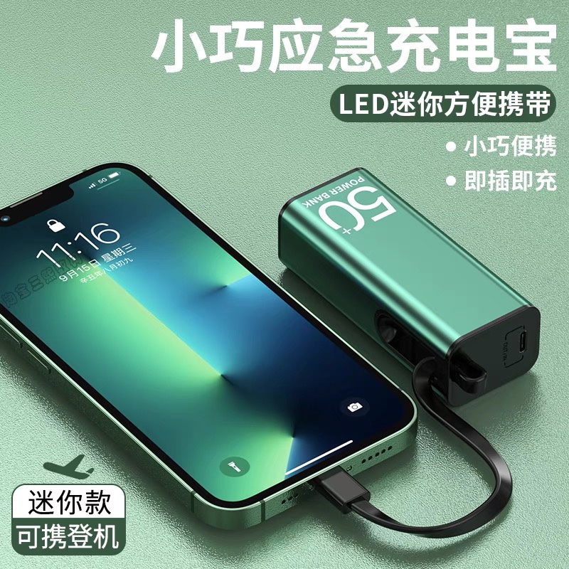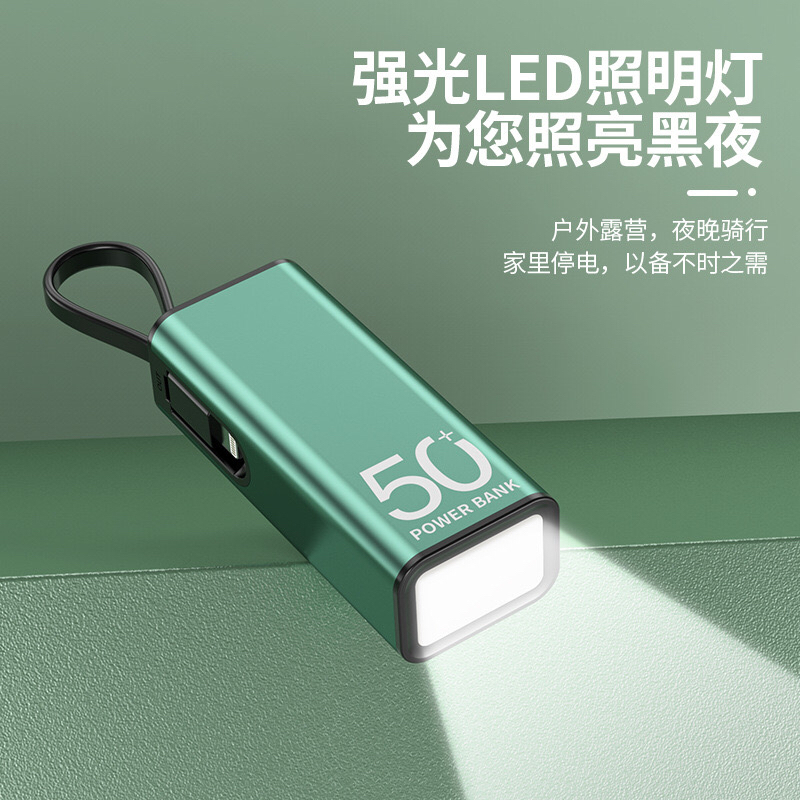 便携迷你小巧应急充电宝自带接口线LED手电筒户外移动电源二合一