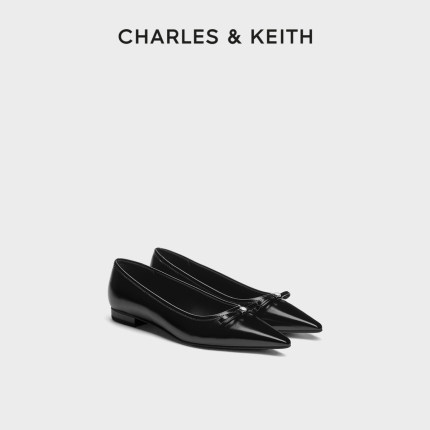 CHARLES&KEITH25冬新款CK1-70381169平底尖头蝴蝶结芭蕾舞鞋单鞋