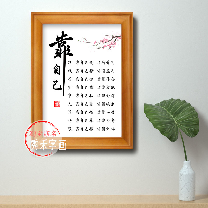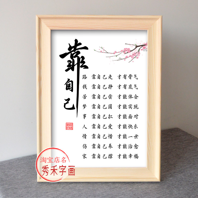 靠自己字画励志格言人生七靠挂画书法办公室桌面摆台实木框装饰画
