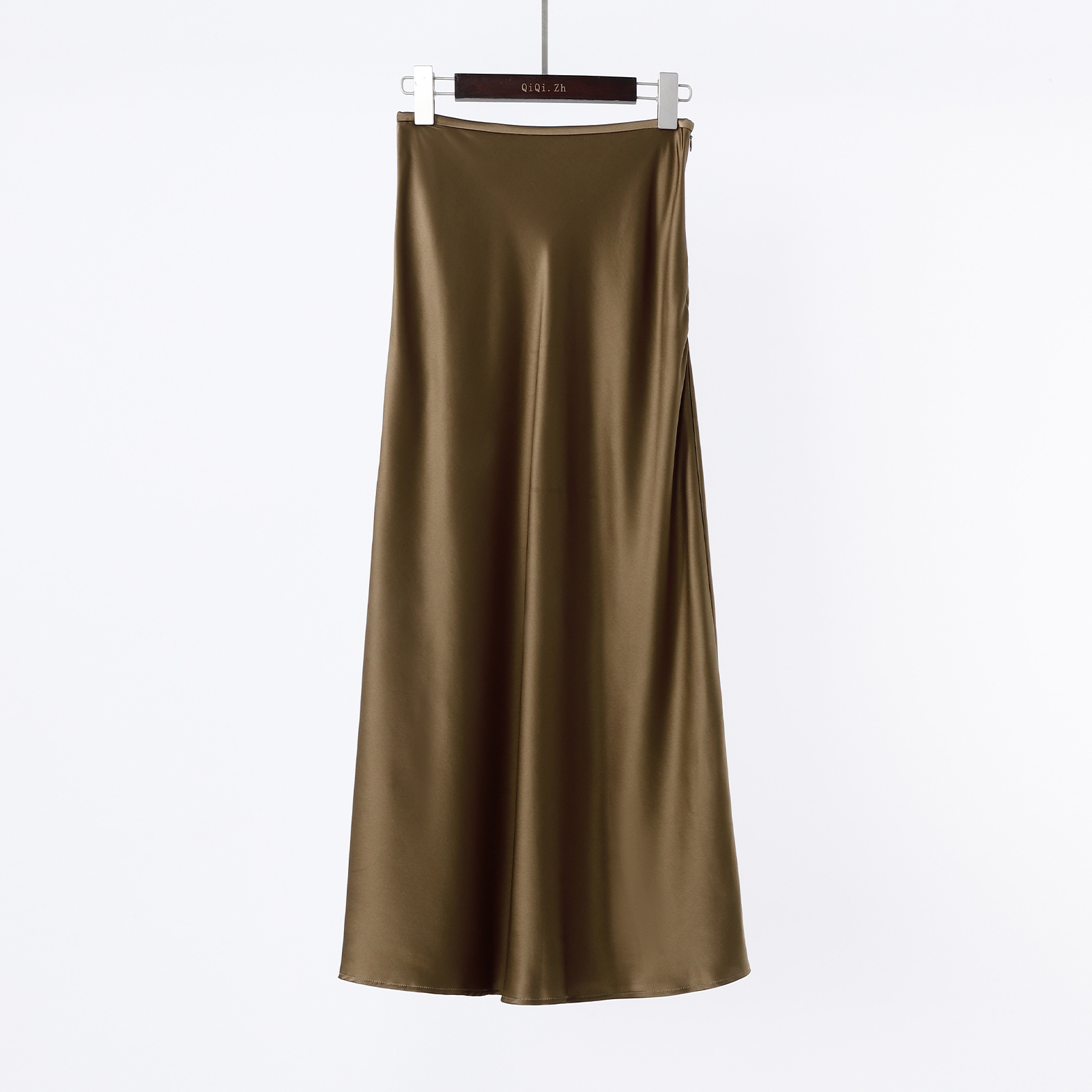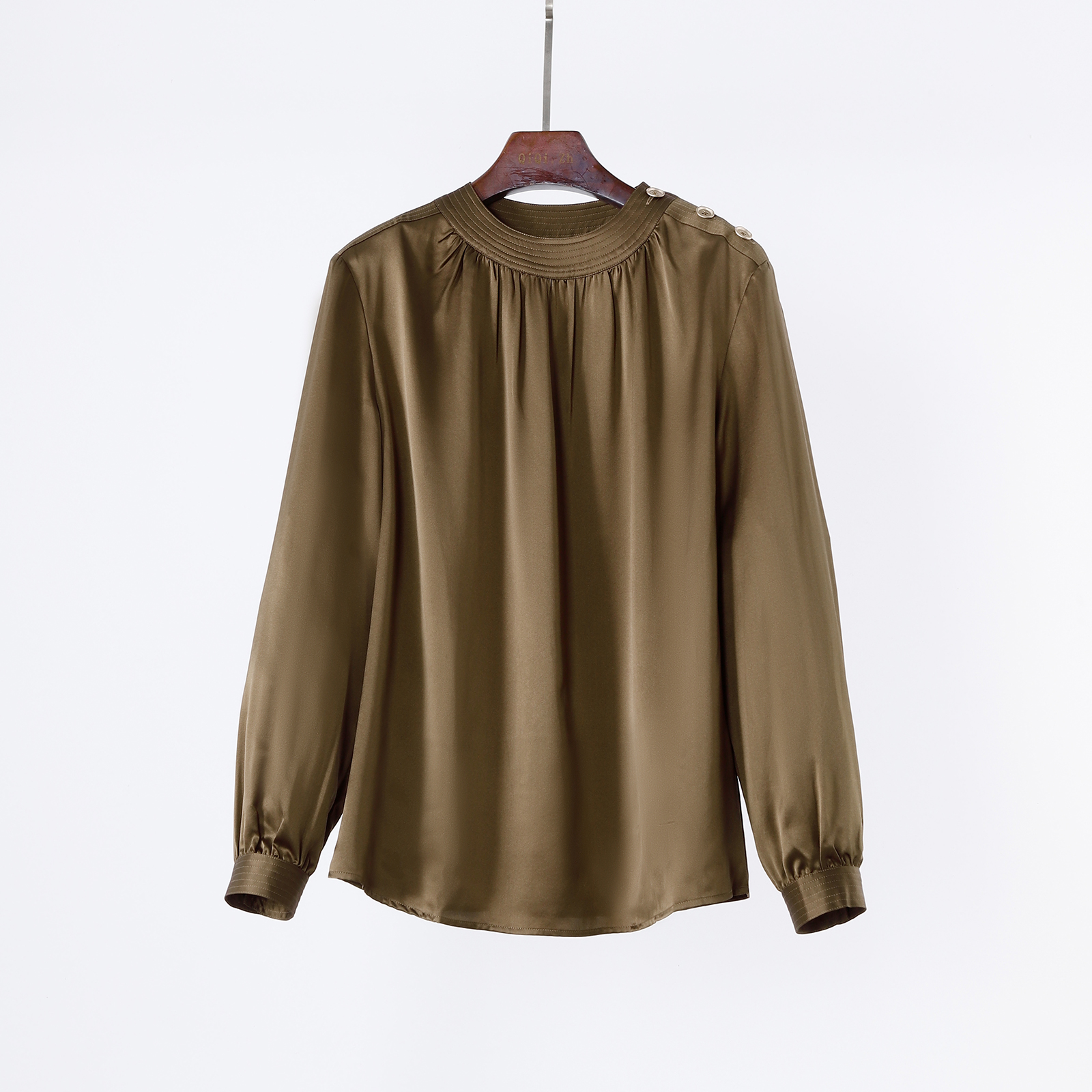 气质桑蚕丝套装 重磅真丝缎面套头长袖衬衫上衣 斜裁半身长裙