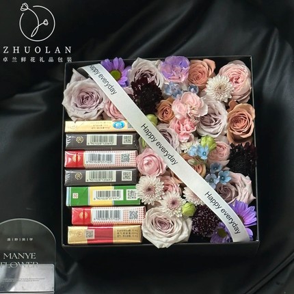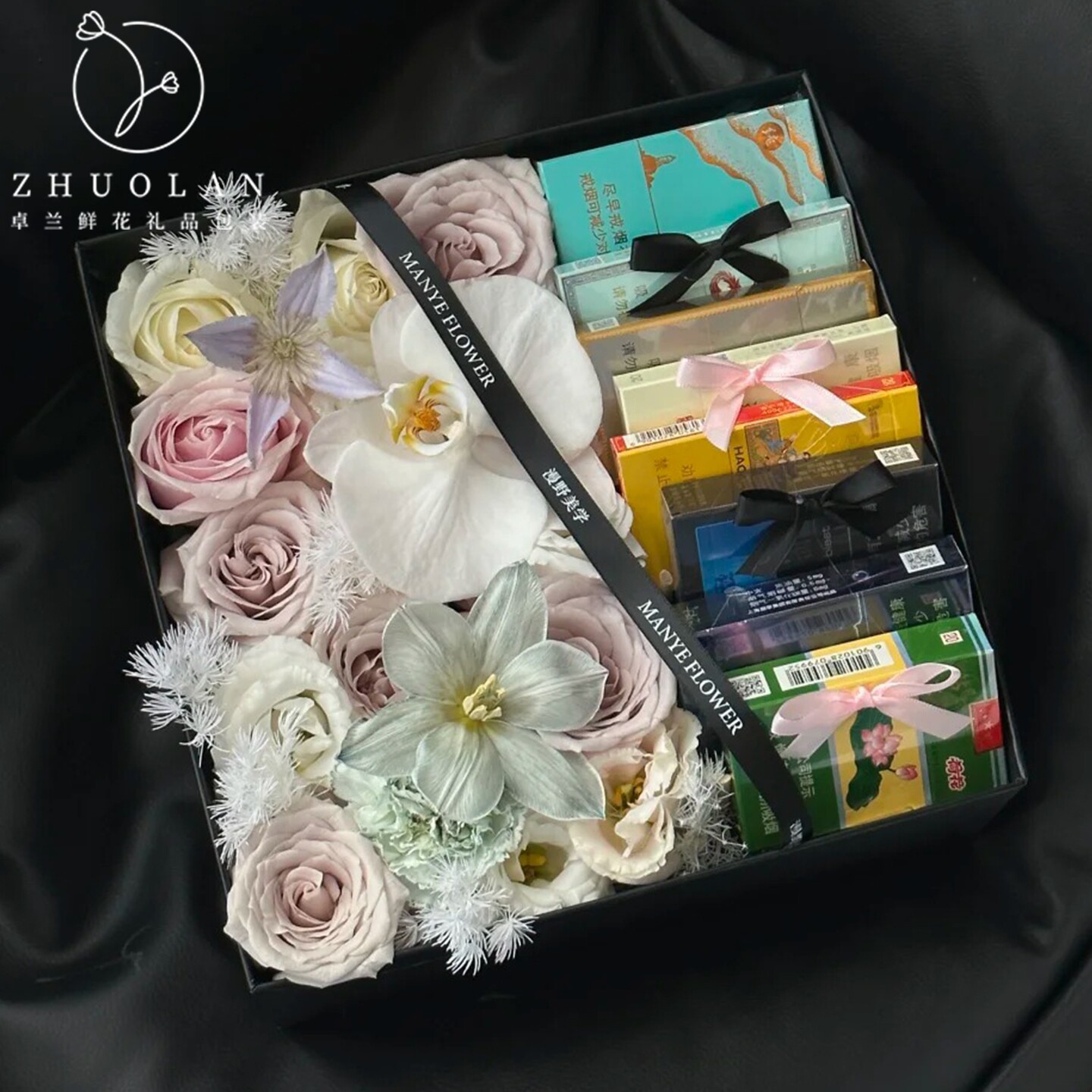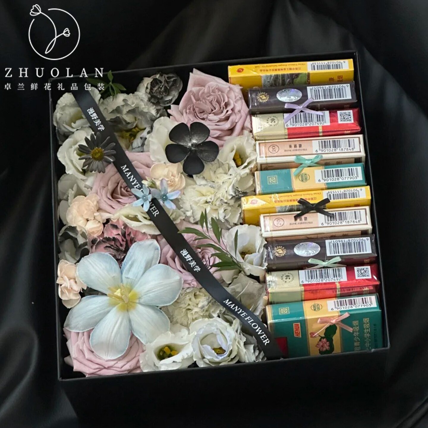 烟盒装礼盒方形空盒礼品盒黑色香烟礼物创意花盒花店手工diy材料