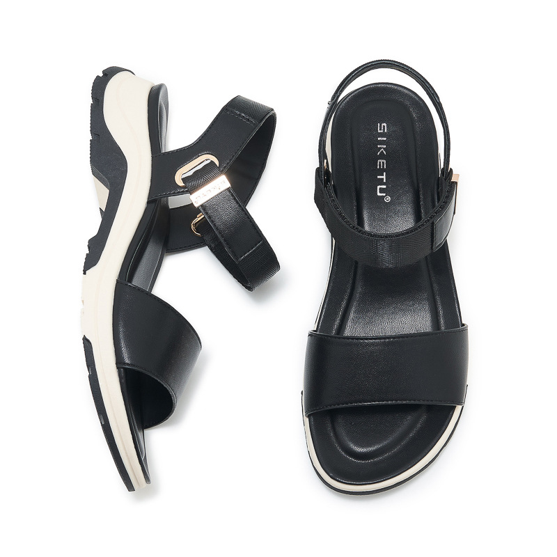 新款2025新款凉鞋女拼色休闲运动舒适厚底魔术贴女鞋大码女士鞋子