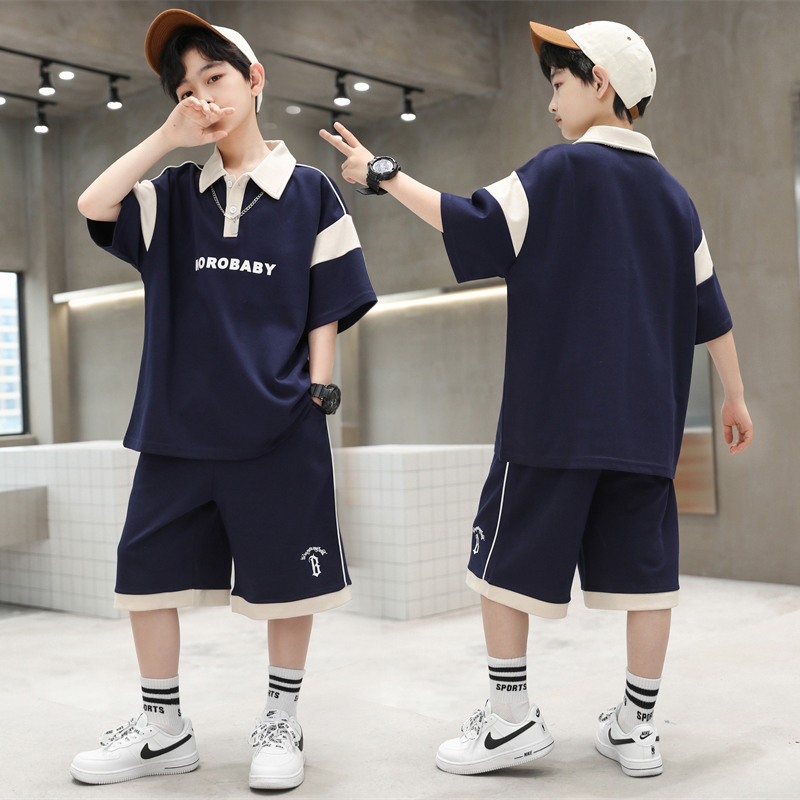 男童夏季套装2023新款中大童酷帅短袖polo领衣服儿童夏装运动潮装