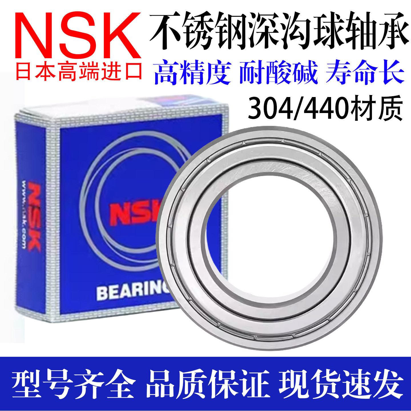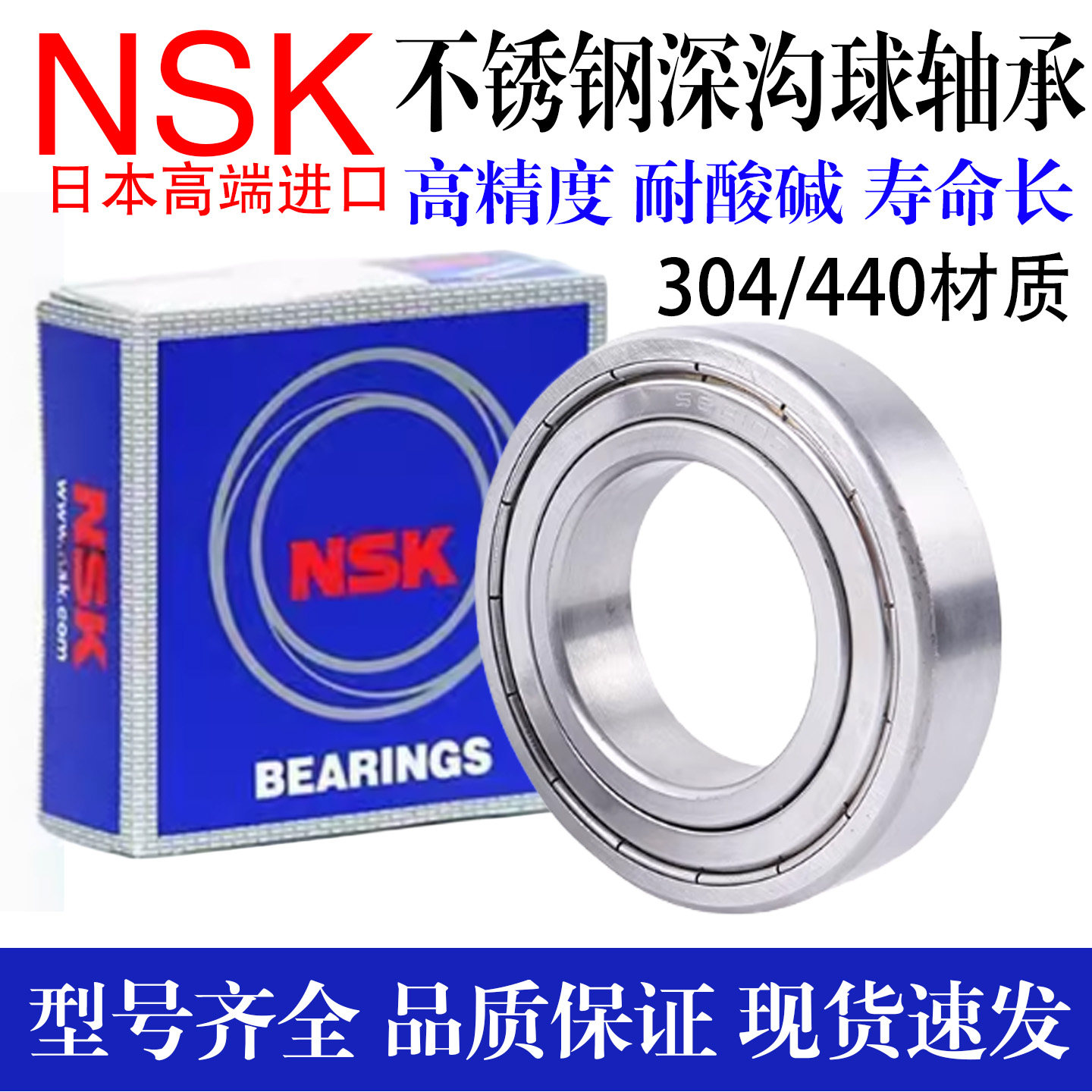 进口NSK防水酸碱不锈钢轴承S6207 6208 6209 6210 6211 6212 Z RS