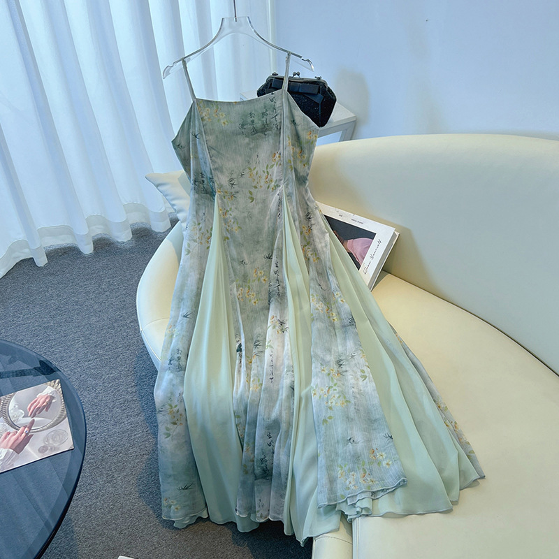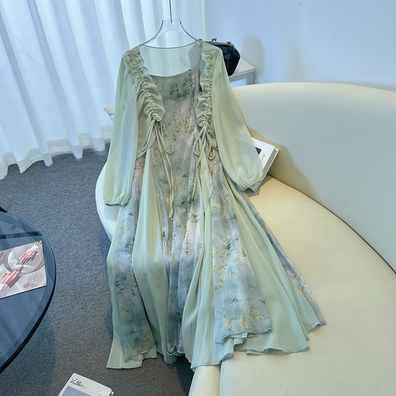 早秋大码女装胖mm国风新中式清冷感吊带连衣裙开衫外披套装两件套