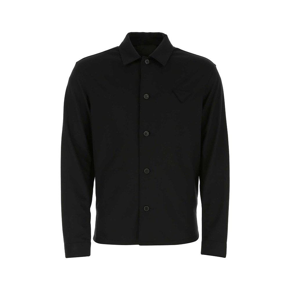 1h可退 潮奢 Prada 普拉达 男士 黑色羊毛羊绒衬衫 SC551S2121Y5S