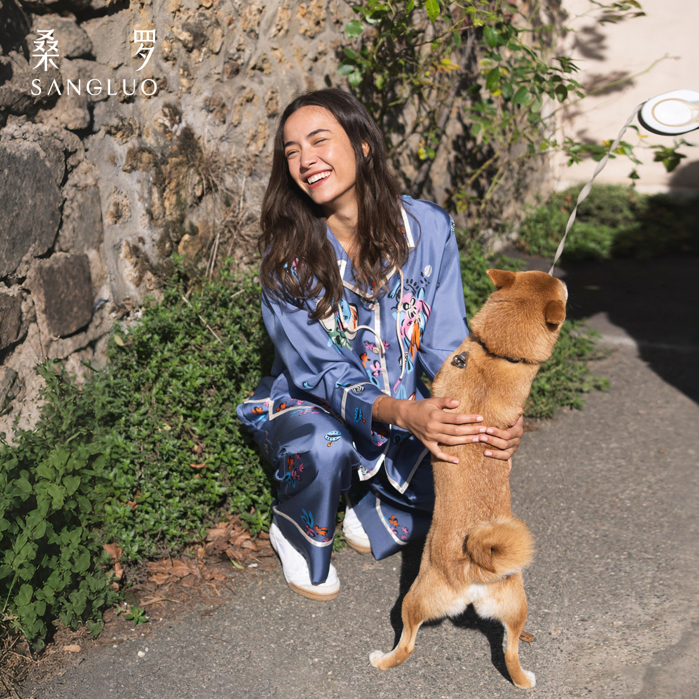 【魔法小狗】桑罗100%桑蚕丝睡衣