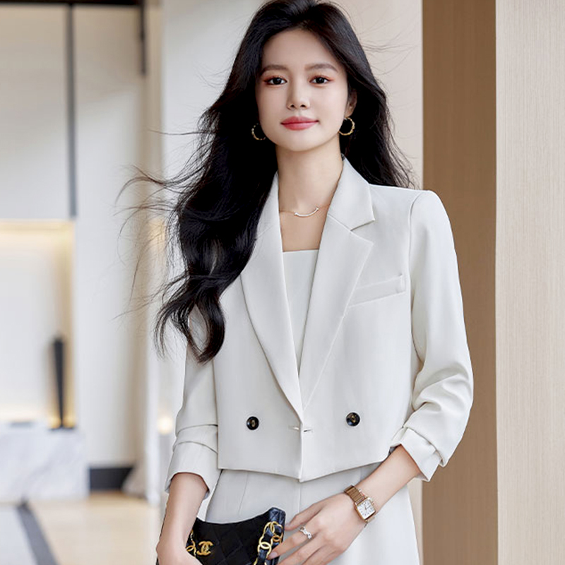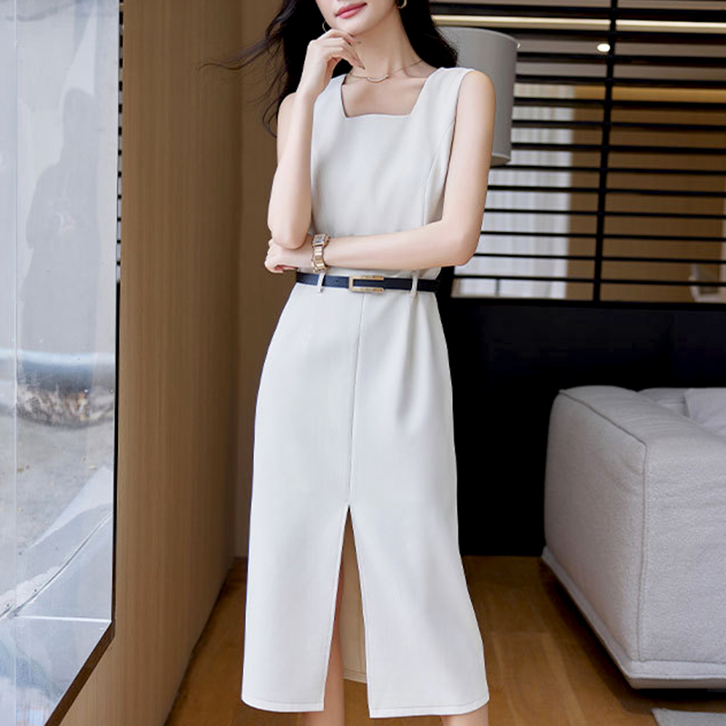 无袖连衣裙女春夏秋新款职业高级感短款西装套装内搭开叉背心裙子