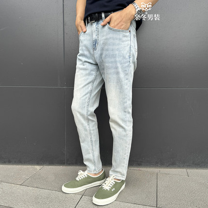 夏季薄款牛仔裤男士浅蓝色九分裤