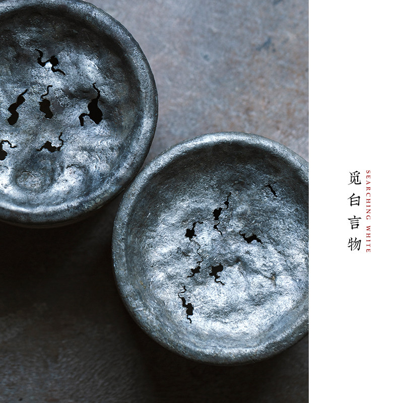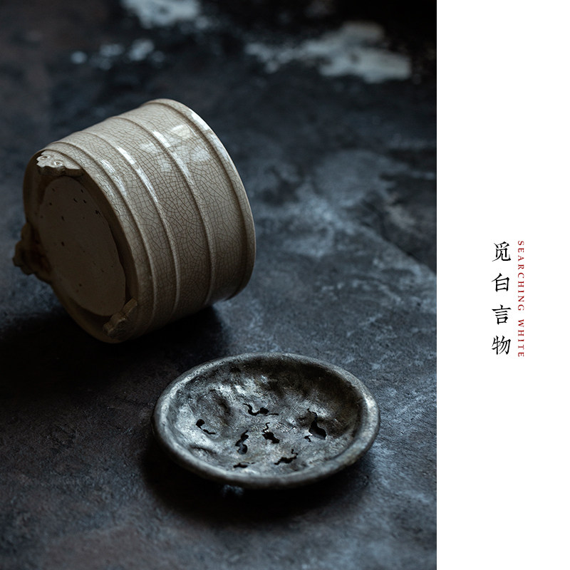 觅白漳窑建水纯锡锻打小渣斗水盂茶洗开片香炉茶渣缸水洗茶道复古
