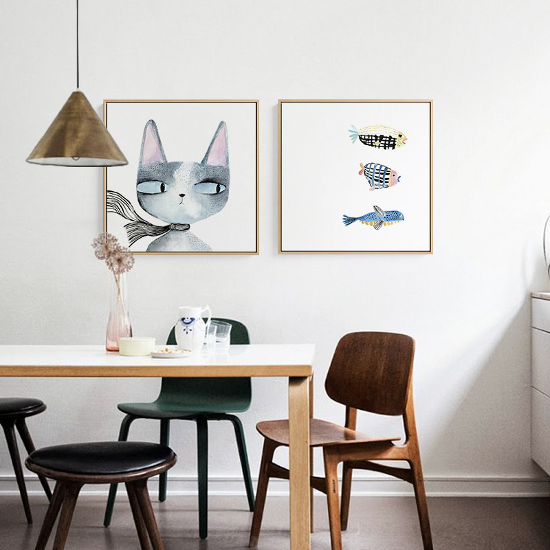 仟象映画 创意北欧装饰画 客厅儿童房挂画现代玄关墙画猫鱼