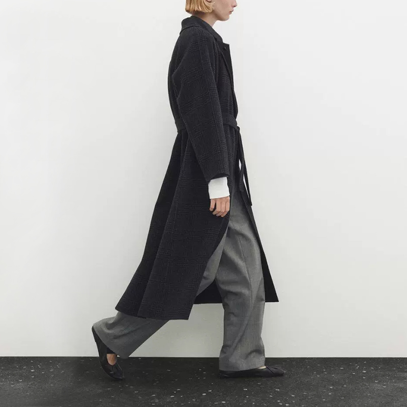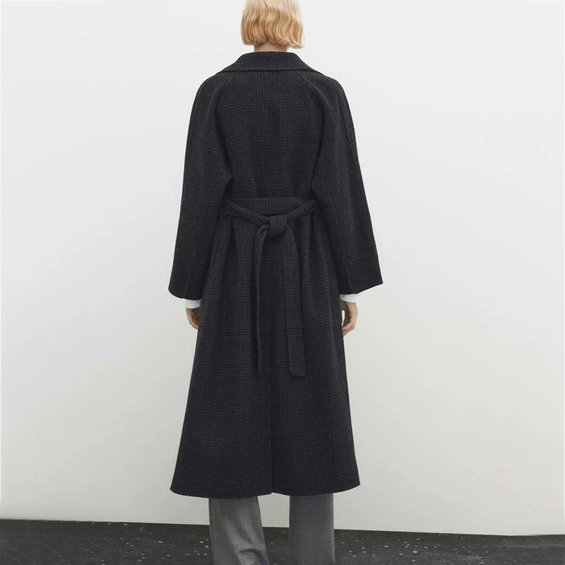 双面羊绒大衣女2025秋冬新款中长款韩版宽松系带格子羊毛呢子外套
