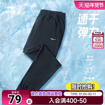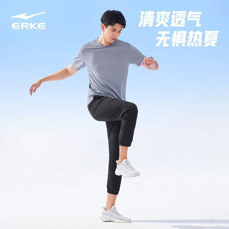 鸿星尔克速干裤运动裤男秋季跑步梭织九分裤男士冰丝透气休闲男裤