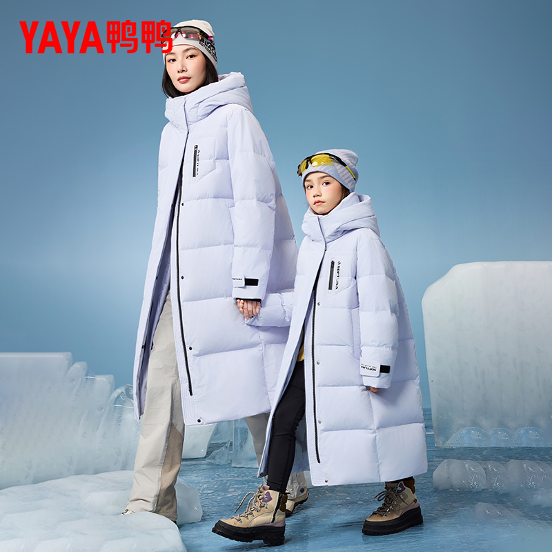 鸭鸭童装儿童羽绒服男女童新款加厚连帽亲子装中大童冬季长款外套