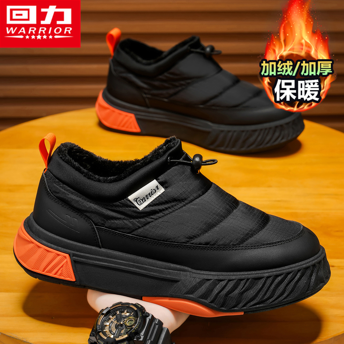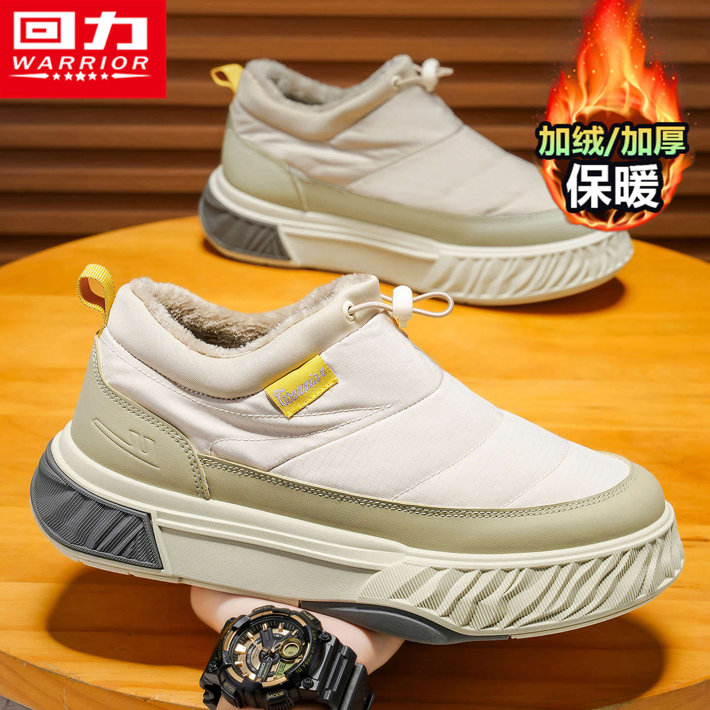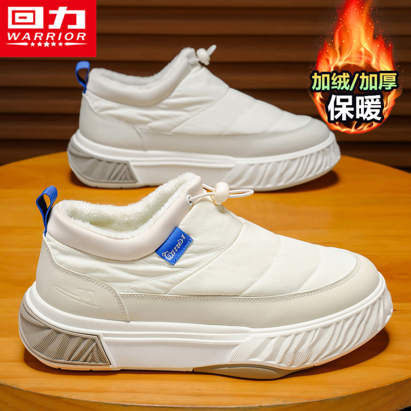 回力帆布男鞋冬季加绒保暖棉鞋休闲防水面包小白板鞋一脚蹬雪地靴