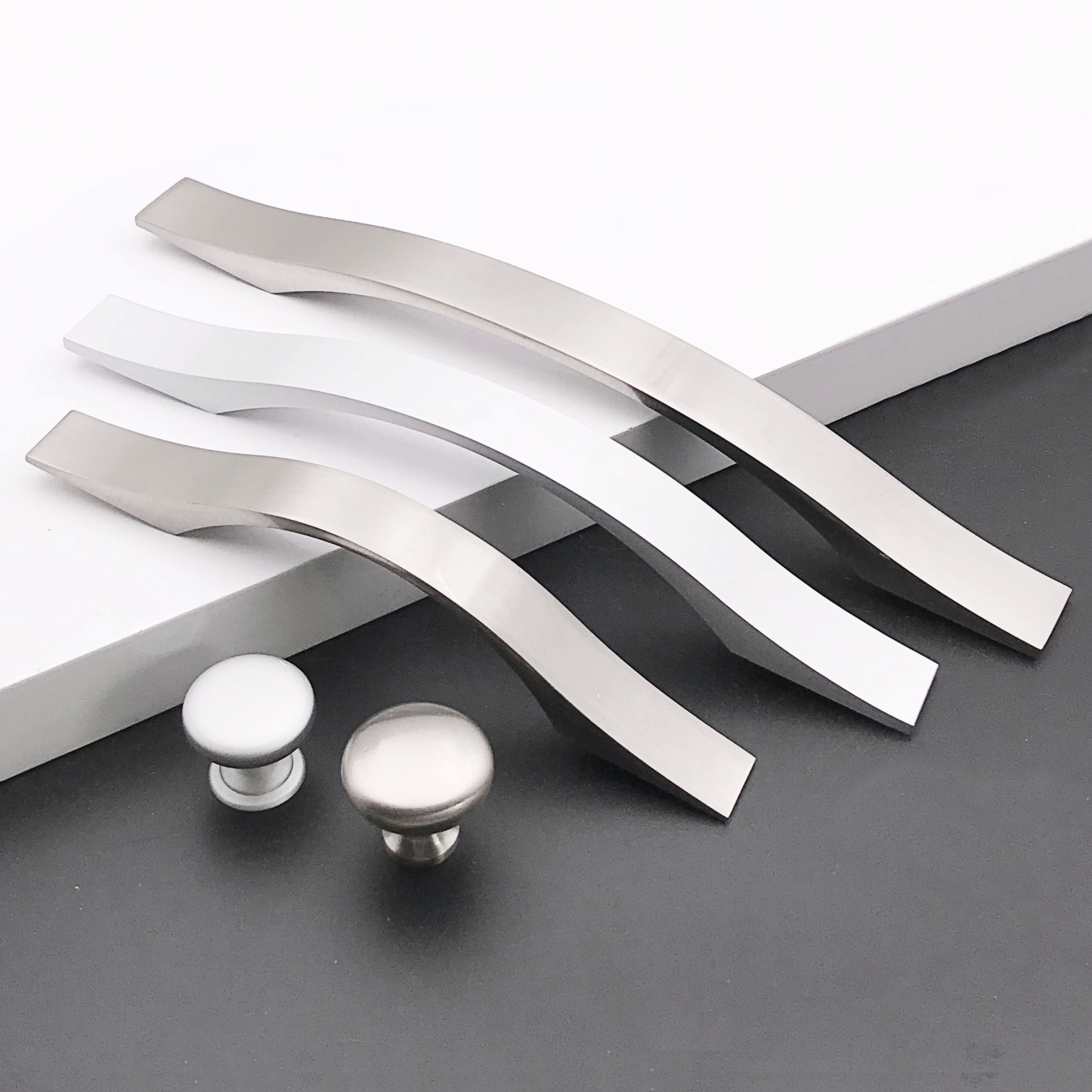 加长太空铝衣柜门抽屉橱柜子拉手铝合金白色弧形小把手现代简约
