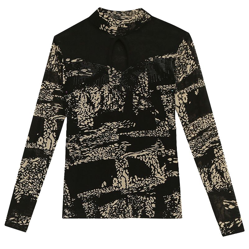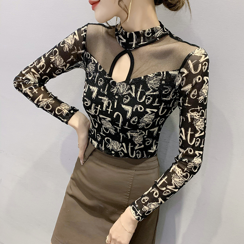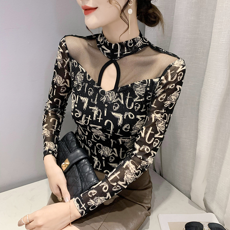 加绒打底衫女秋冬欧货性感镂空网纱长袖T恤内搭上衣洋气蕾丝小衫