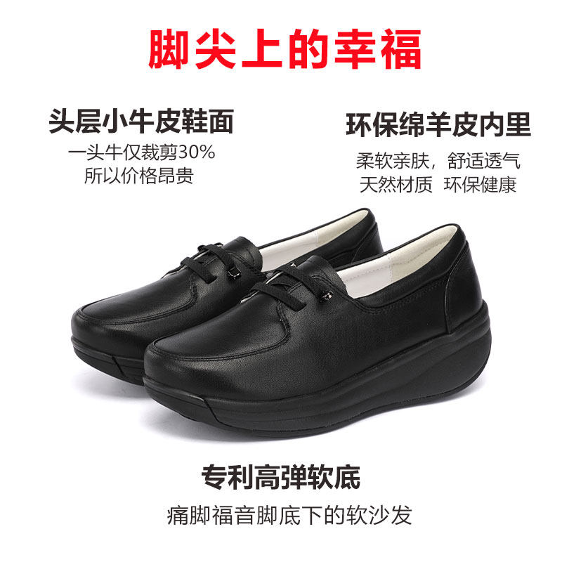 真皮妈妈鞋厚底软底软皮软面舒适女鞋头层牛皮坡跟羊皮中老年单鞋