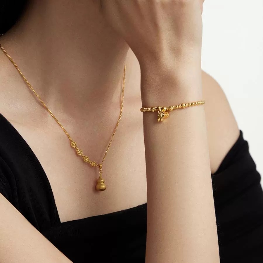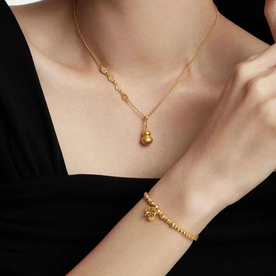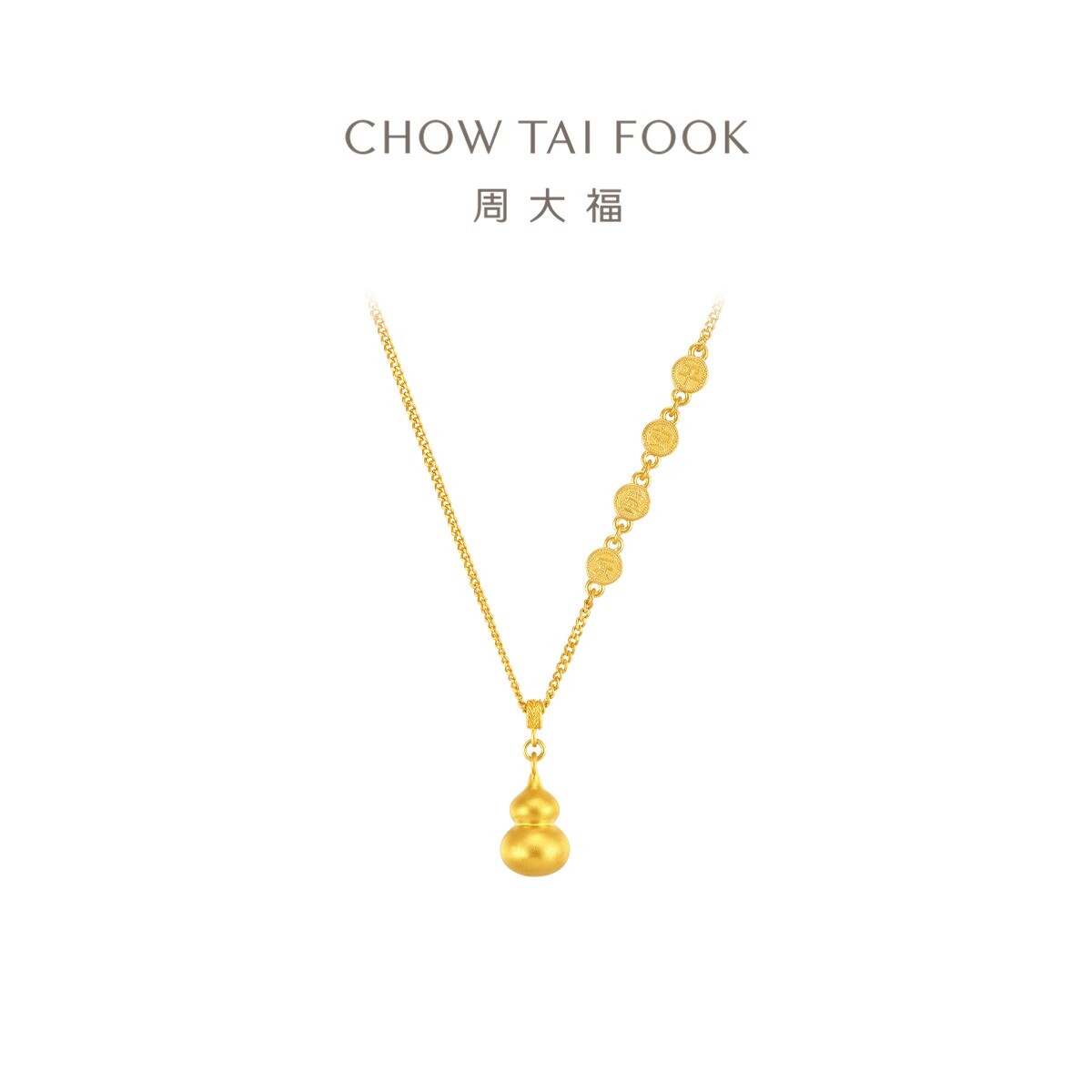 周大福平安喜乐福禄葫芦套链足金黄金项链女计价EOF1477礼物官方