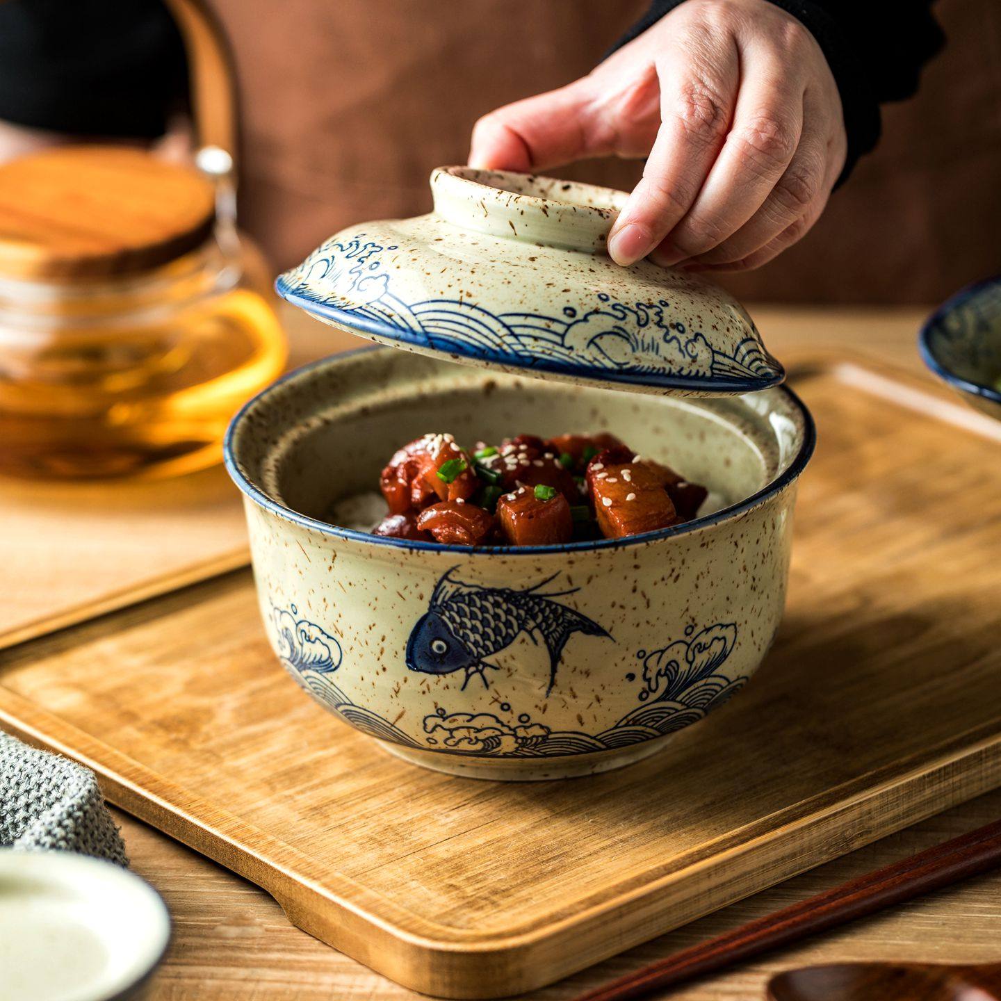 微波炉加热碗陶瓷带盖碗蒸碗面碗