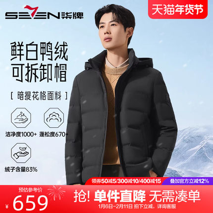 【白鸭绒】柒牌可拆卸连帽羽绒服男2025冬季新款休闲保暖加厚外套