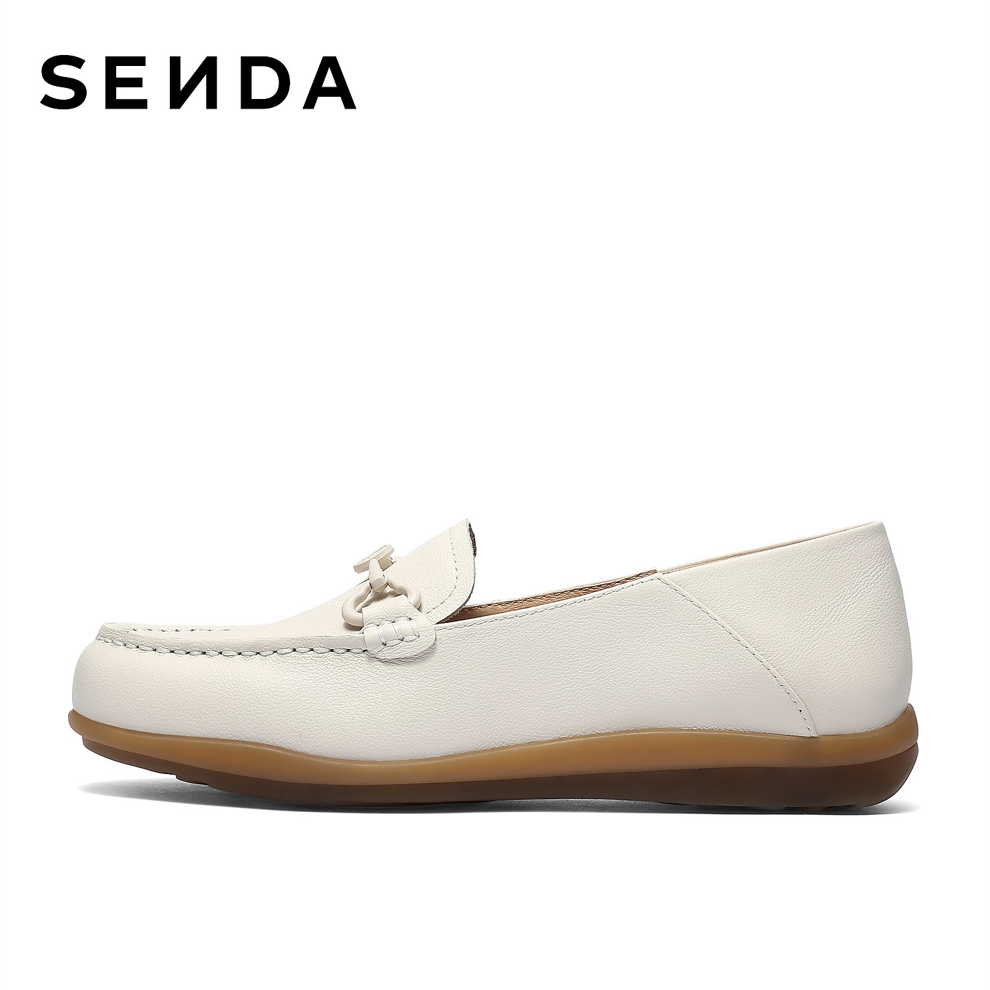 森达真皮乐福鞋女鞋26新款商场同款一脚蹬单鞋皮鞋豆豆鞋4JPB6