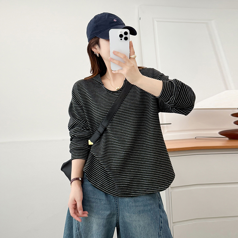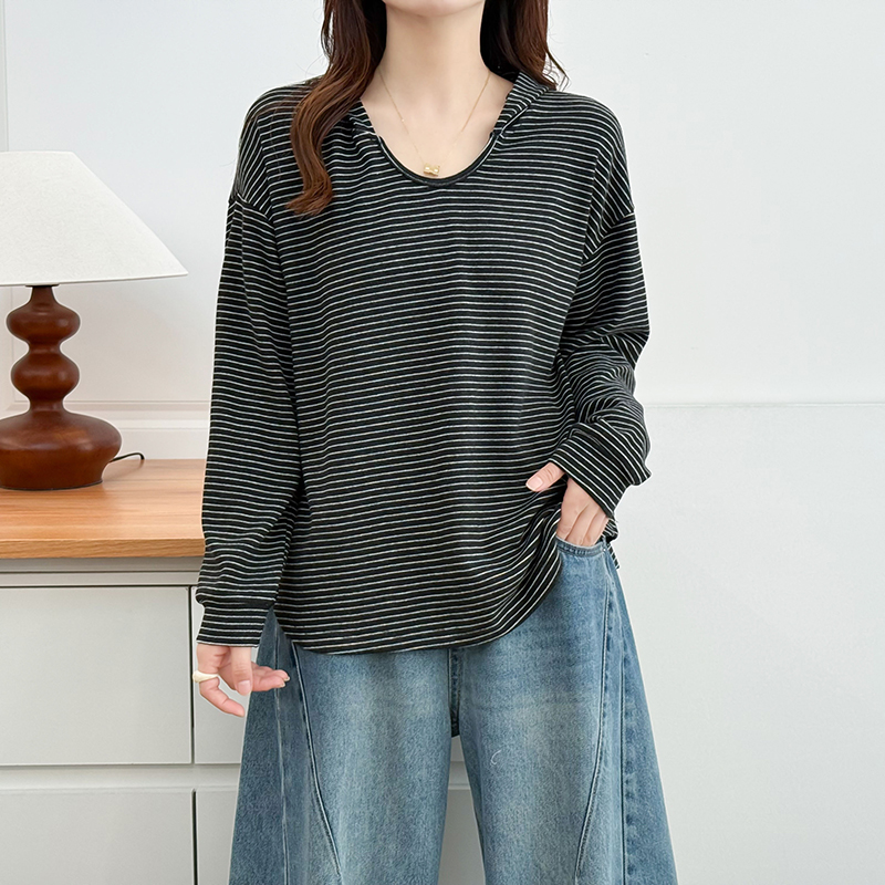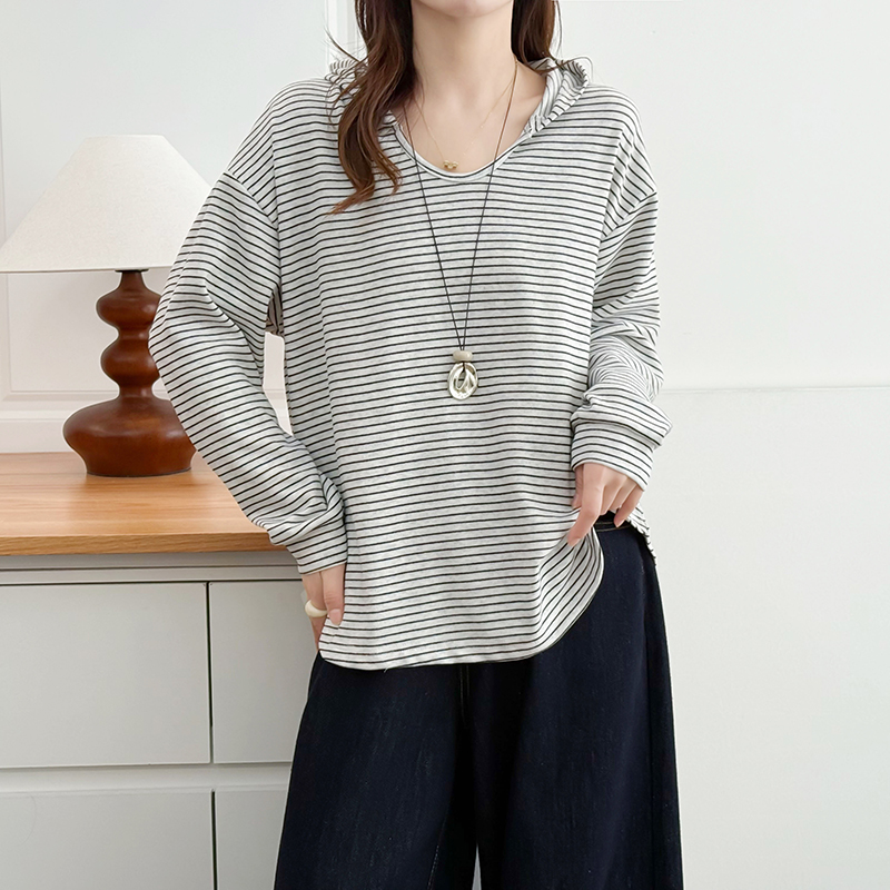 大码女装连帽条纹卫衣2025春秋爆款宽松遮肚子显瘦休闲打底衫T恤