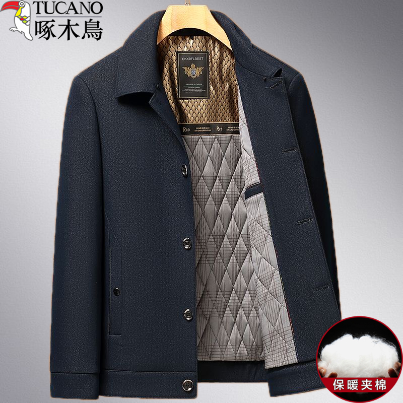 啄木鸟中年男士夹棉外套轻薄二棉衣服秋冬季爸爸装中老年人夹克衫