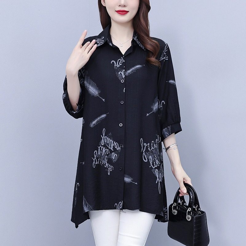春季遮屁股衬衫上衣女士遮肚子雪纺衫2025春装新款时髦中长款小衫