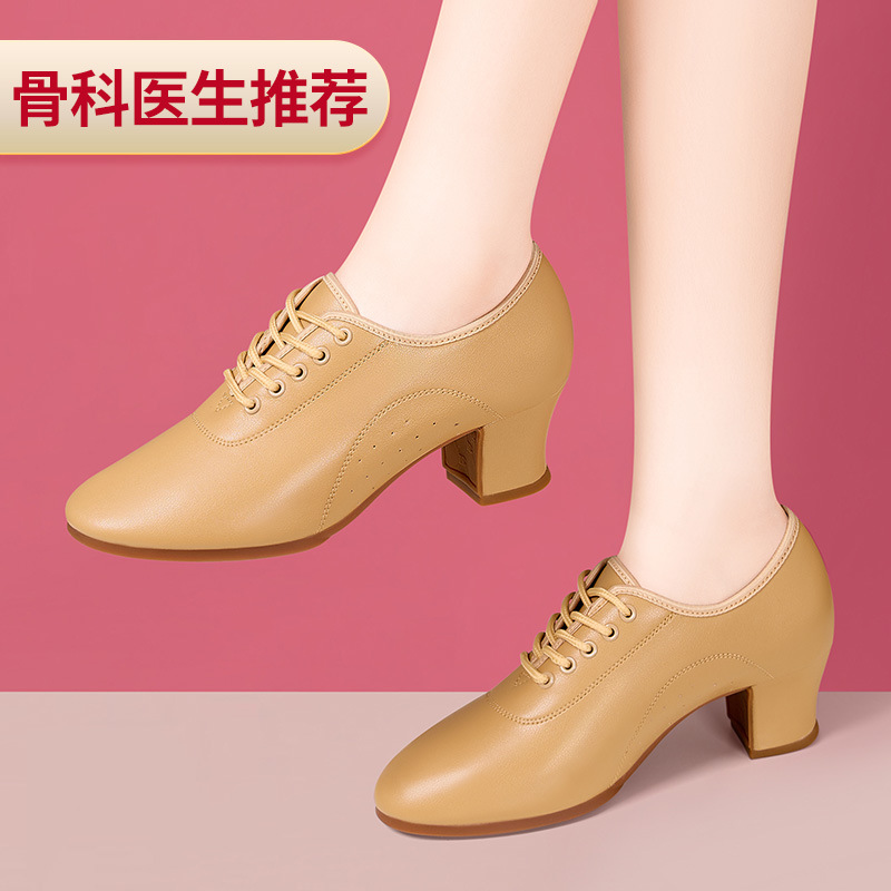 软底真皮舞蹈鞋中跟不累脚跳舞鞋