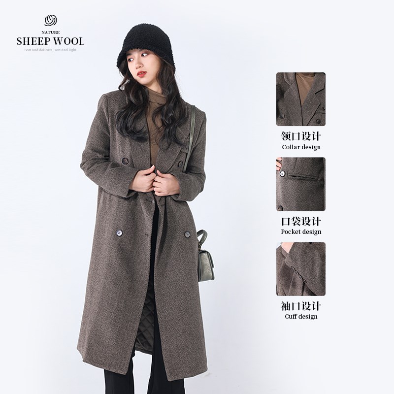 咖色羊毛呢外套女中长款2024秋冬新款小个子高级感正肩加厚呢大衣