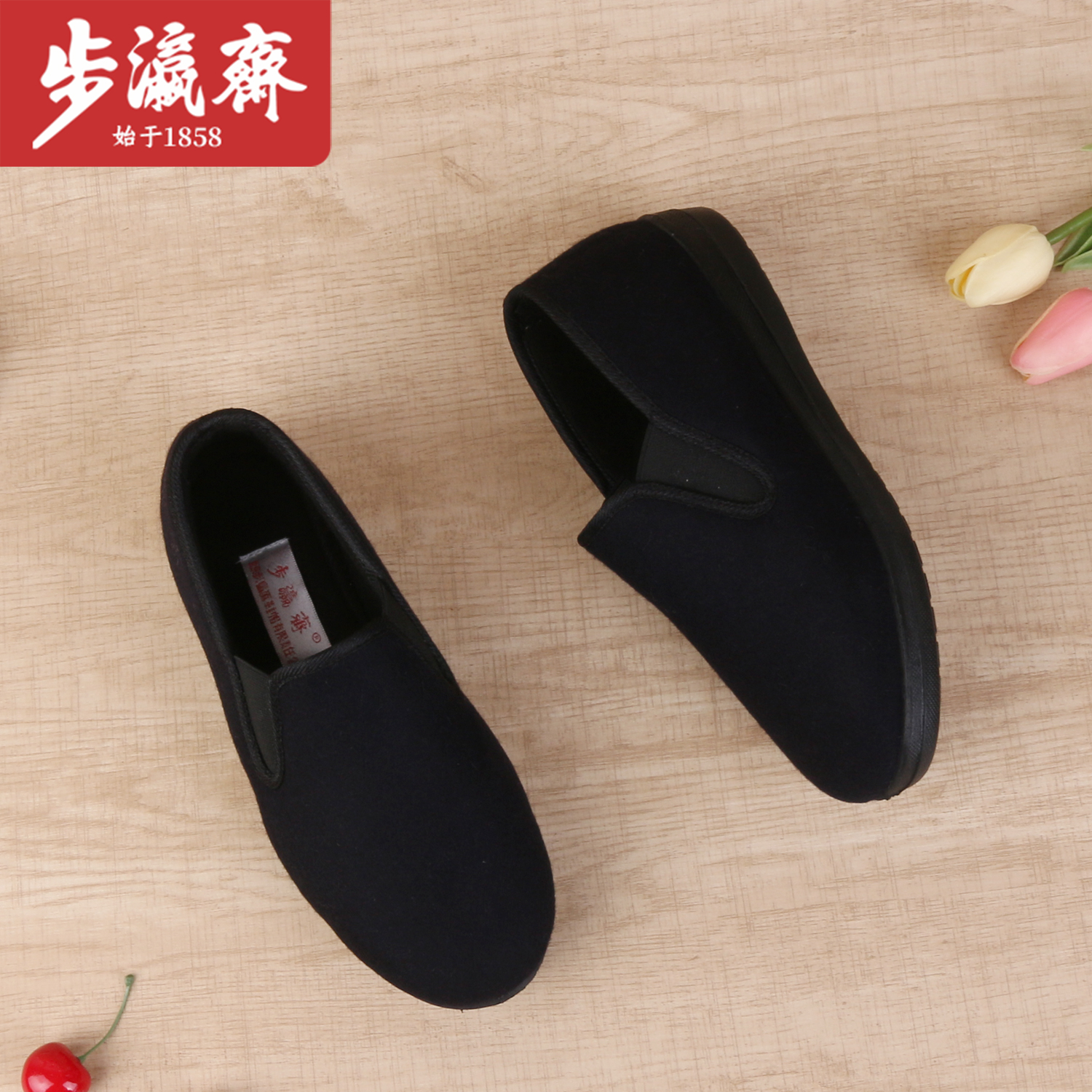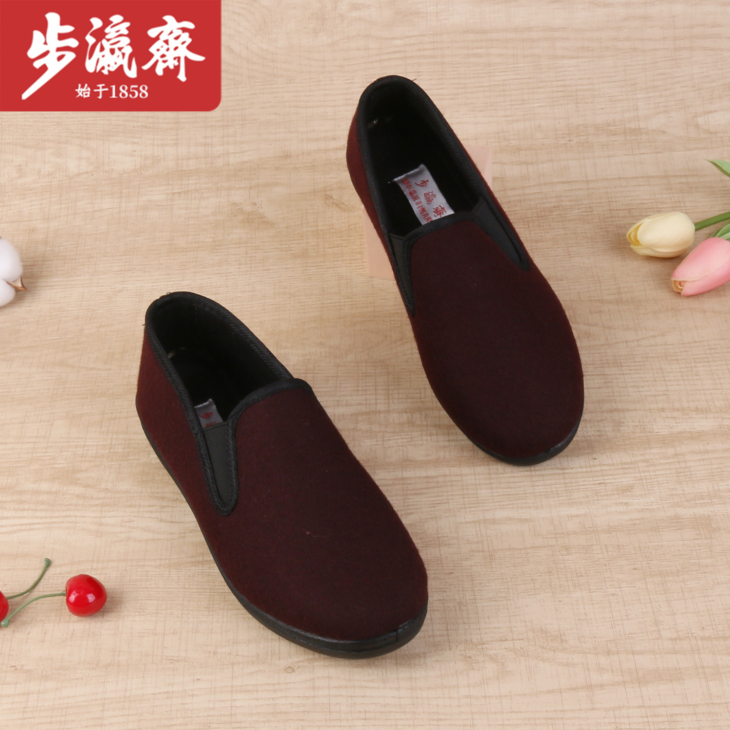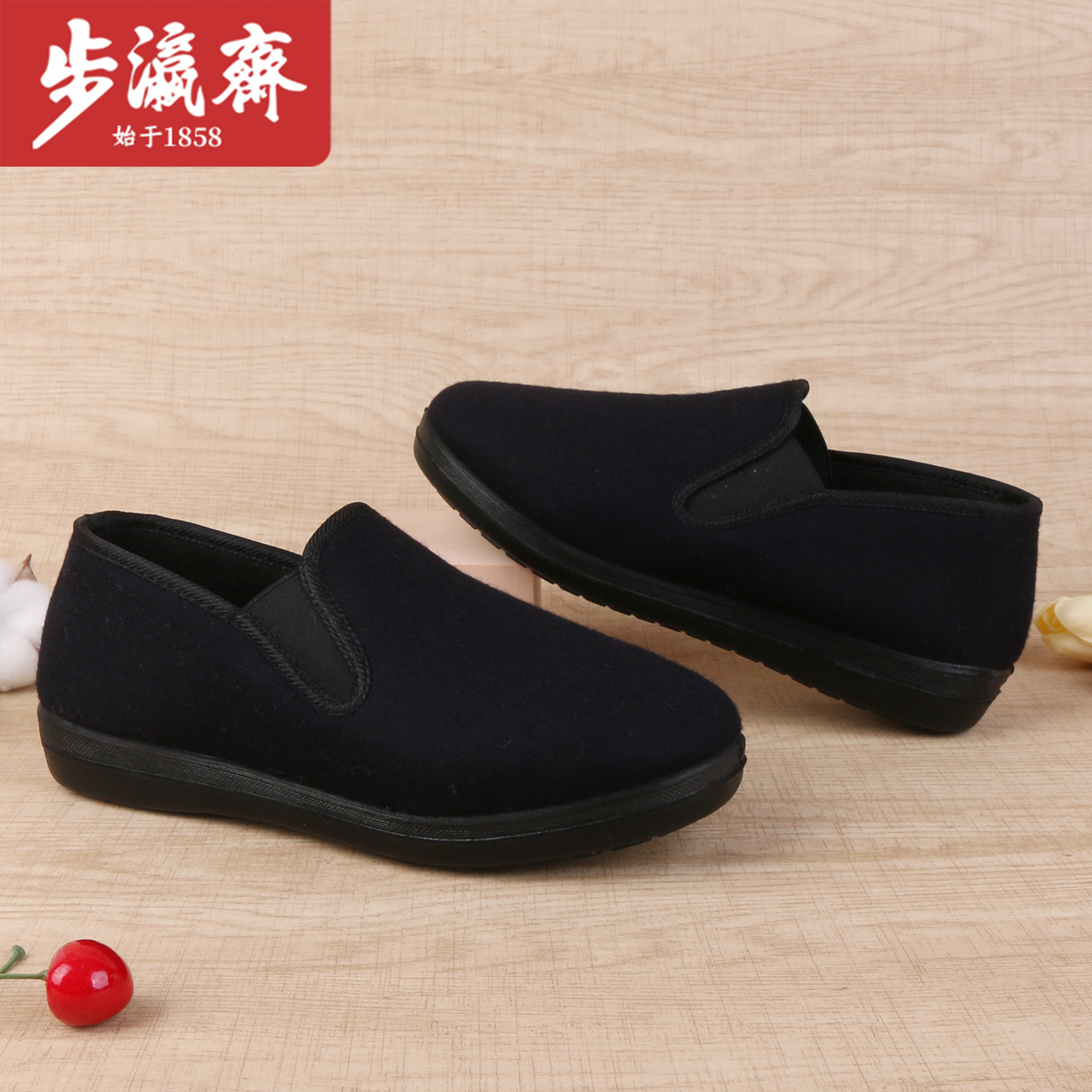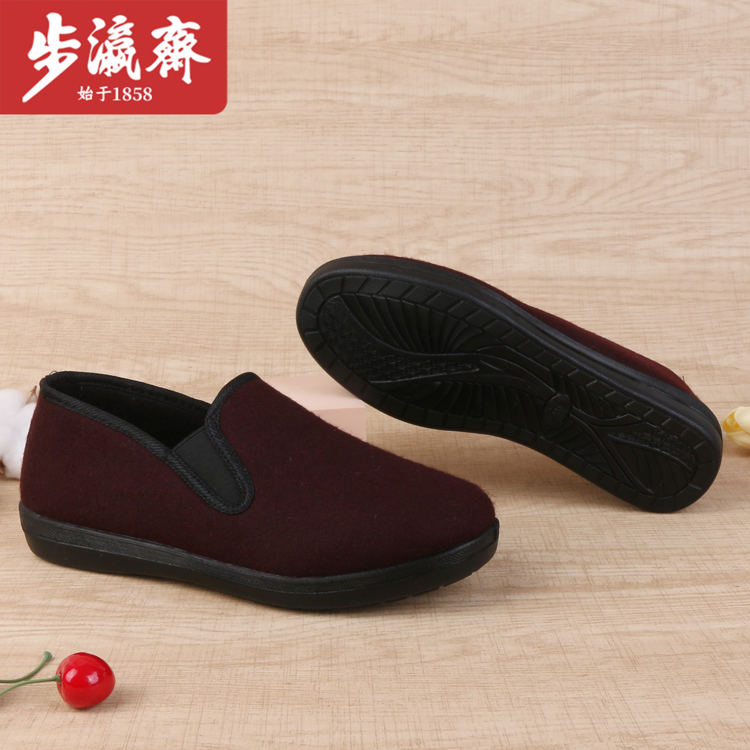步瀛斋冬季老北京棉鞋加绒保暖平底妈妈鞋防滑中老年一脚蹬奶奶鞋