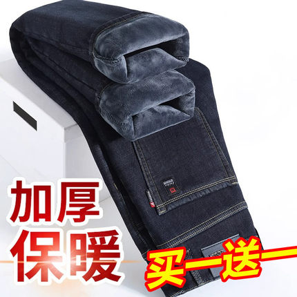 Yishion以纯官方时尚正品牛仔裤男加绒加厚宽松直筒保暖裤子男士