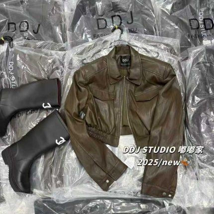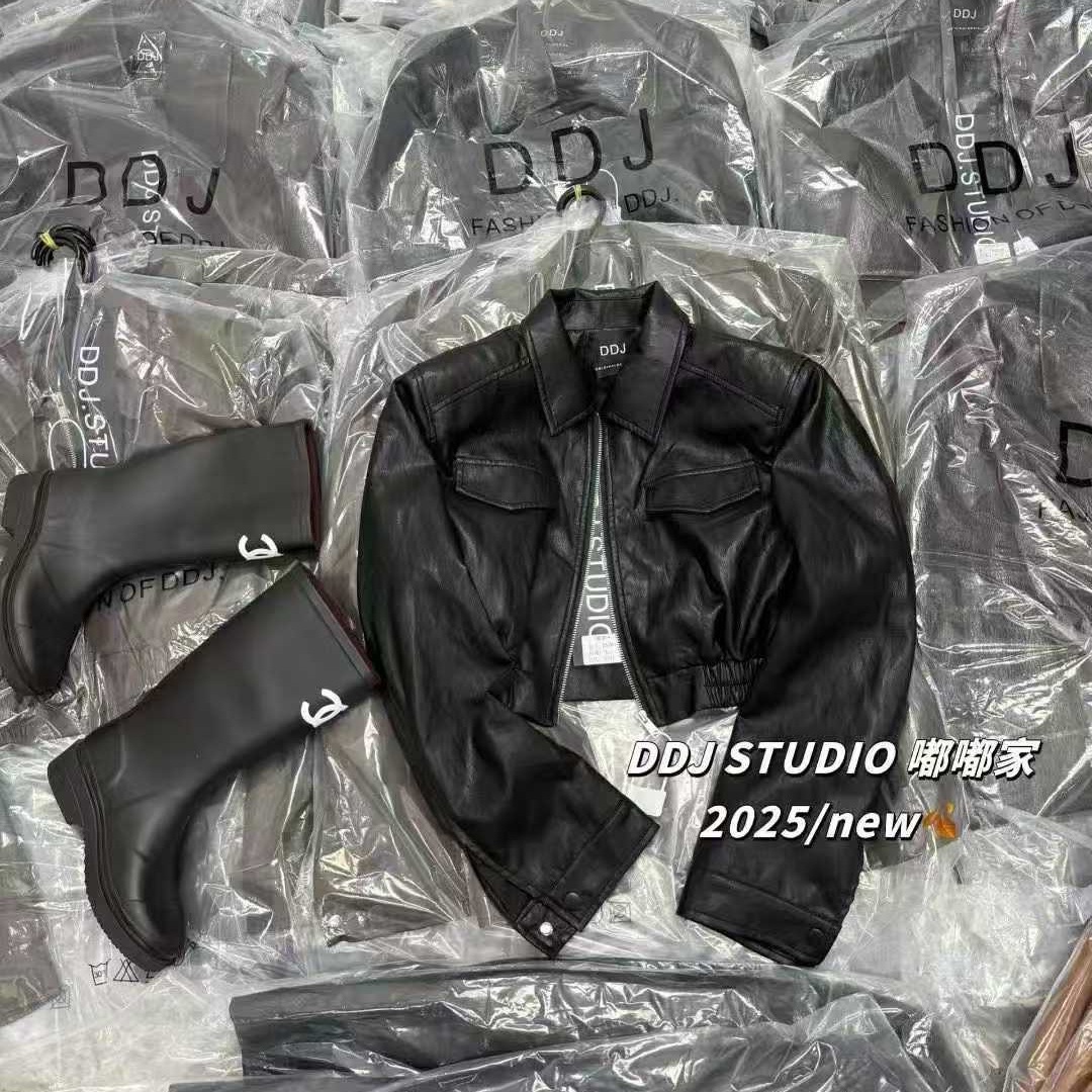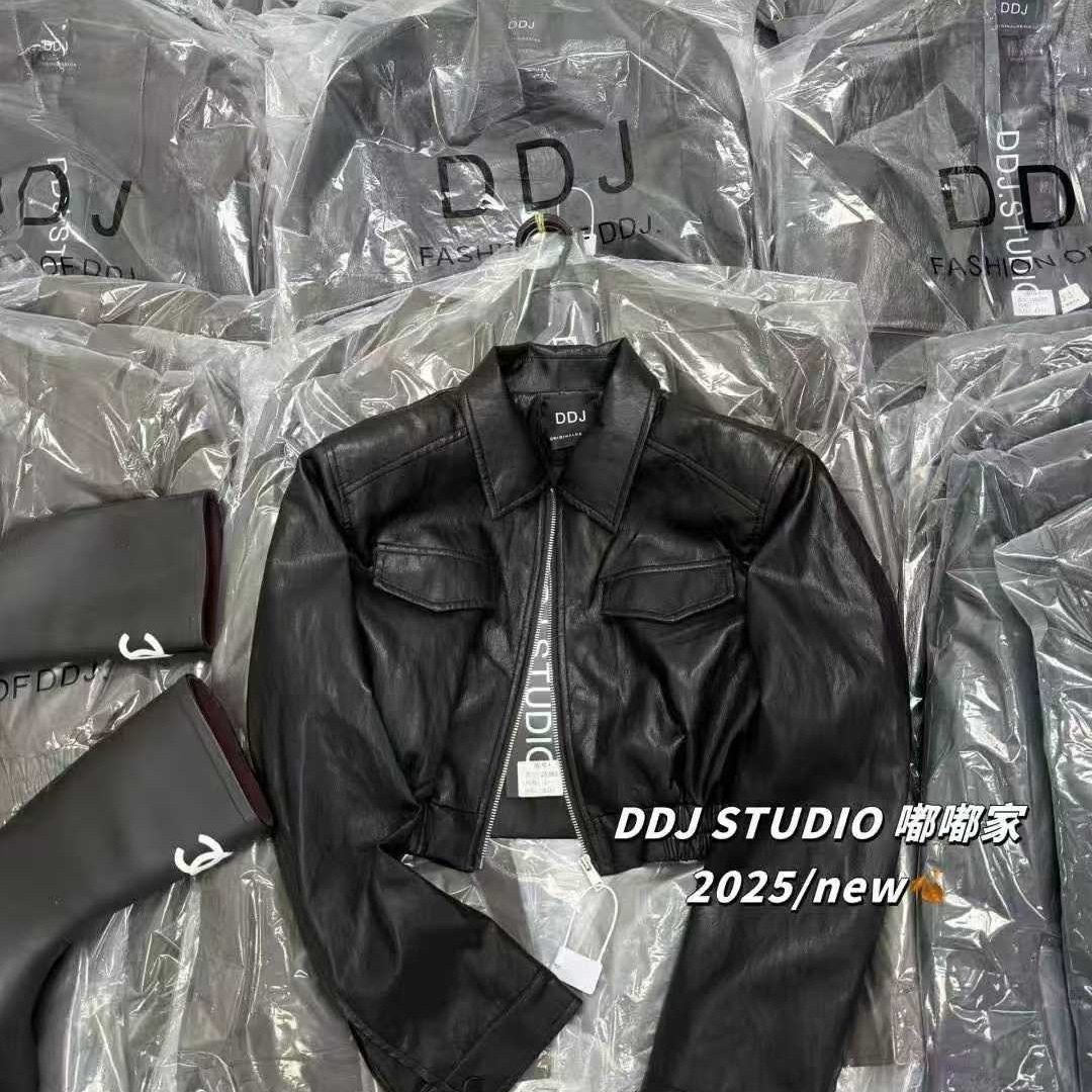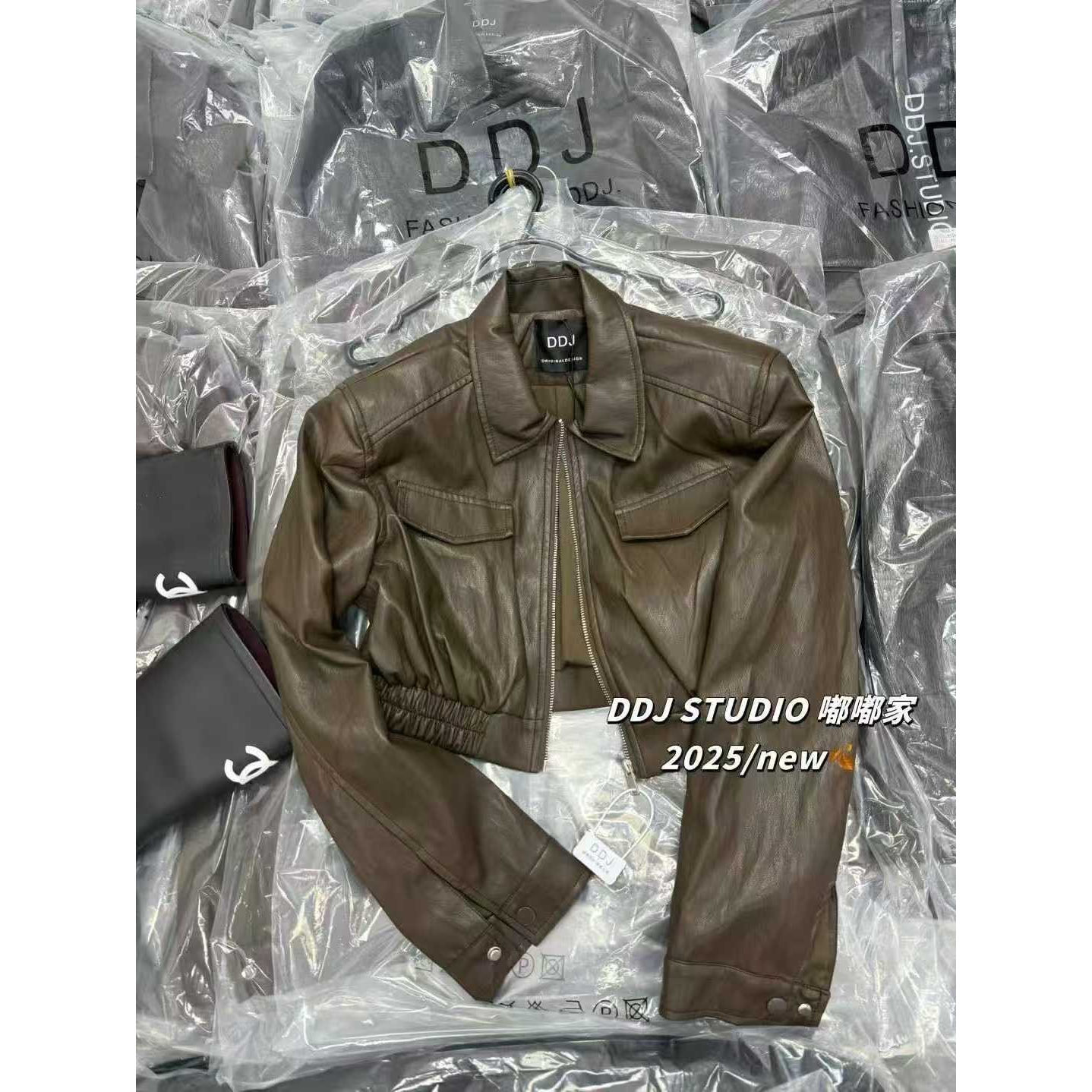 2025秋装机车复古风翻领短款皮衣女秋2025新款设计感外套
