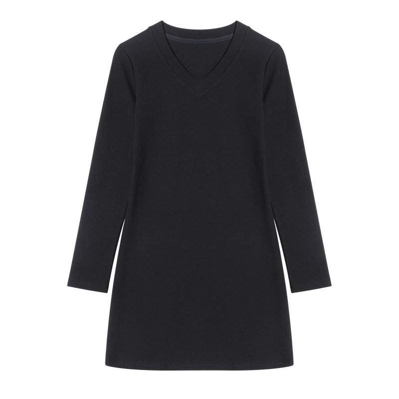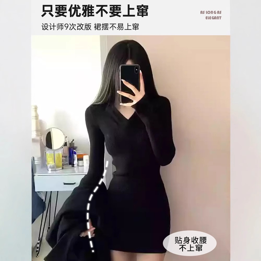 配大衣内搭黑色针织连衣裙子女春秋冬加绒打底修身紧身显瘦包臀裙