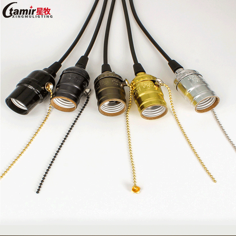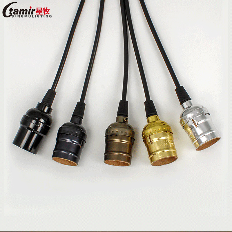 吊灯线家用e27螺口灯头带线悬挂式吊灯灯座复古钨丝吊线带线灯头