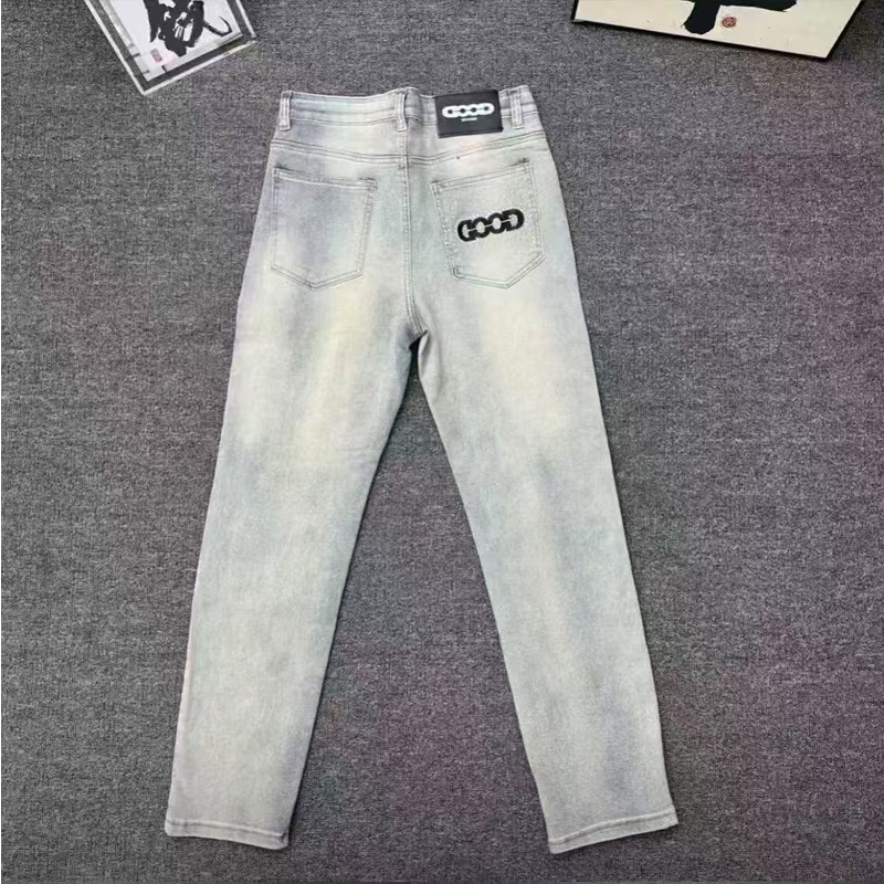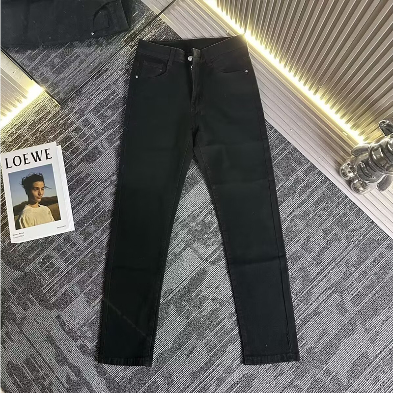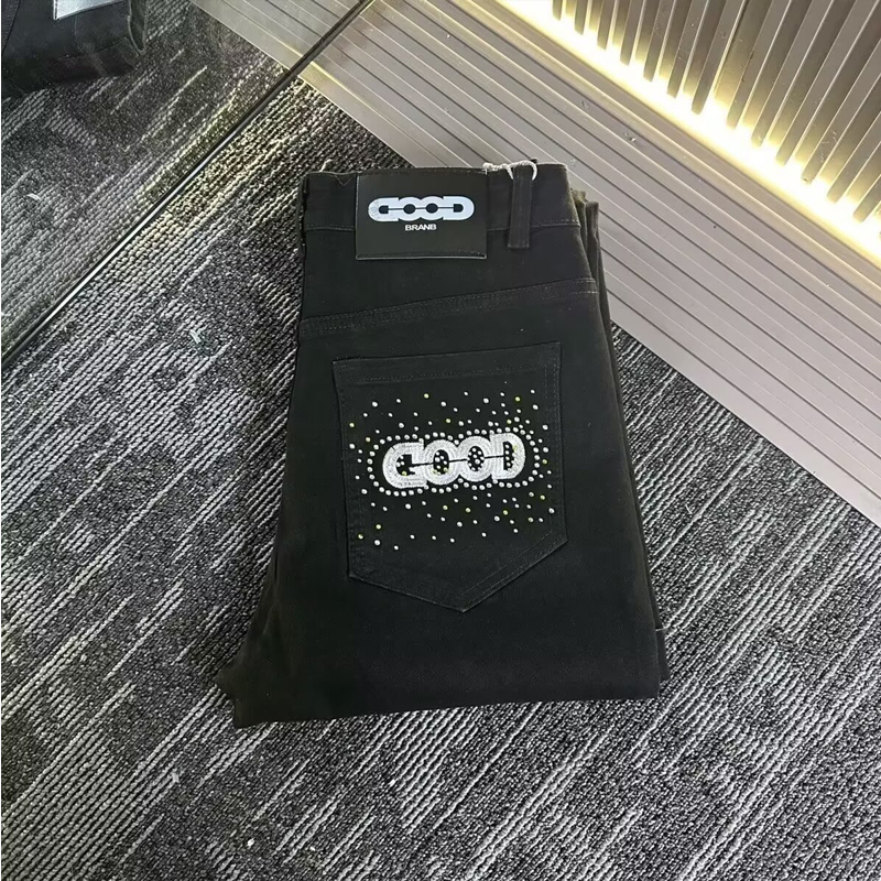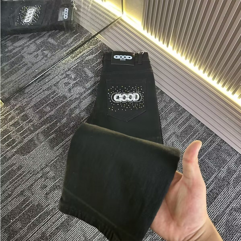春秋季烫钻GOOD刺绣牛仔裤男女同款潮流修身小脚休闲黑色九分裤男