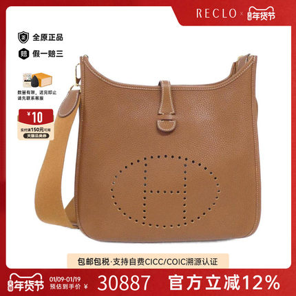中古Hermes爱马仕女包A级95新 Evelyn 3PM伊芙琳金棕色TC皮斜挎包