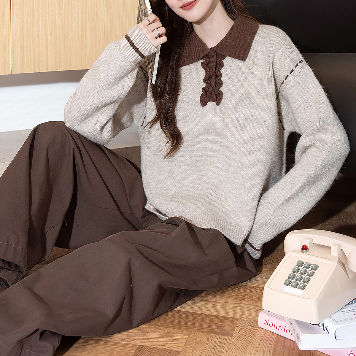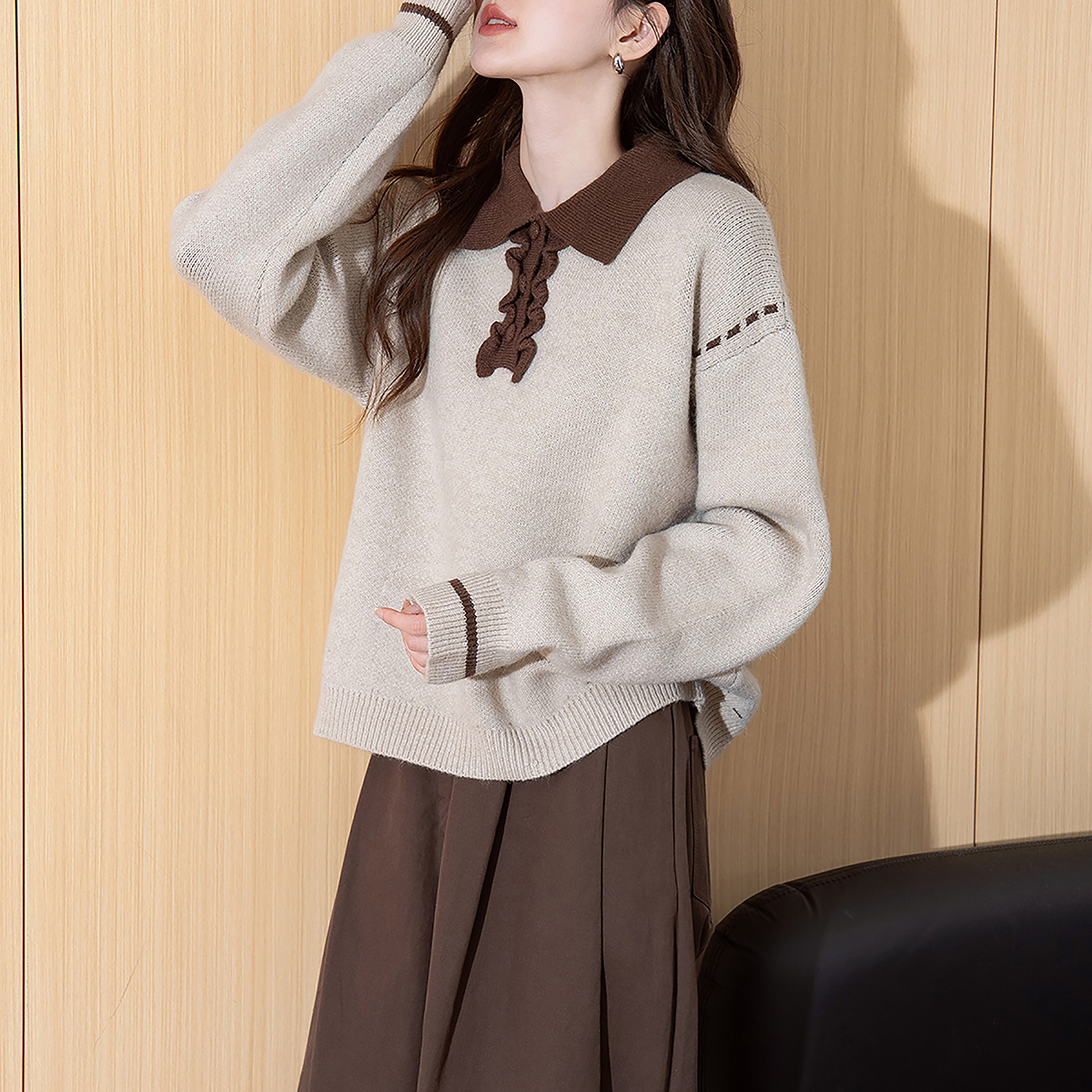 唐狮2025秋冬毛衣女法式复古风撞色翻领套头春秋可外穿高级感女装