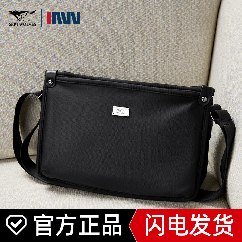 七匹狼商务斜挎包男款单肩包轻便通勤背包新款时尚公文包挎包小包