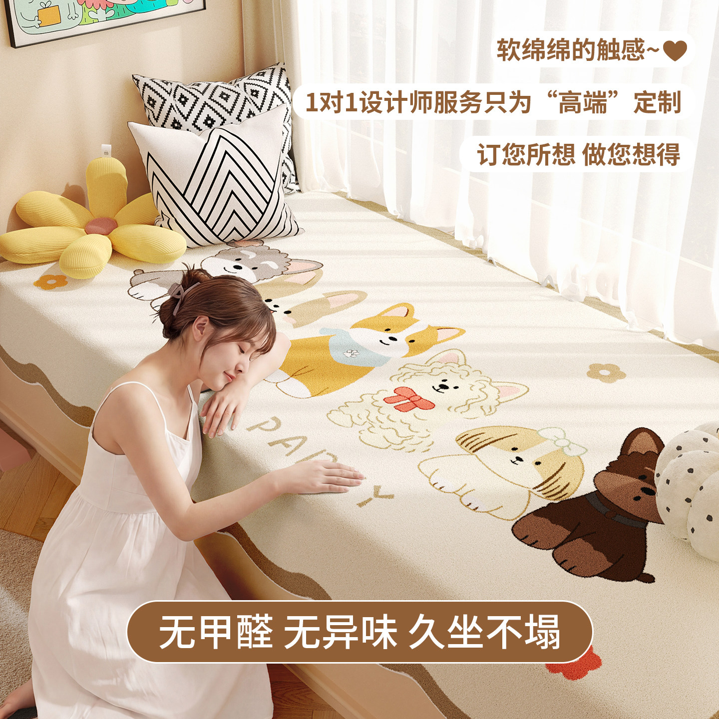 毛绒飘窗垫可机洗款窗台垫儿童房四季通用卧室榻榻米床边地毯坐垫