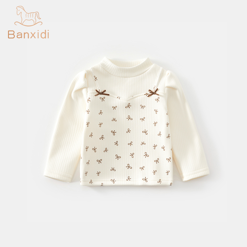 班喜迪女童长袖t恤秋冬款2025新款加绒儿童打底衫女宝宝上衣冬装