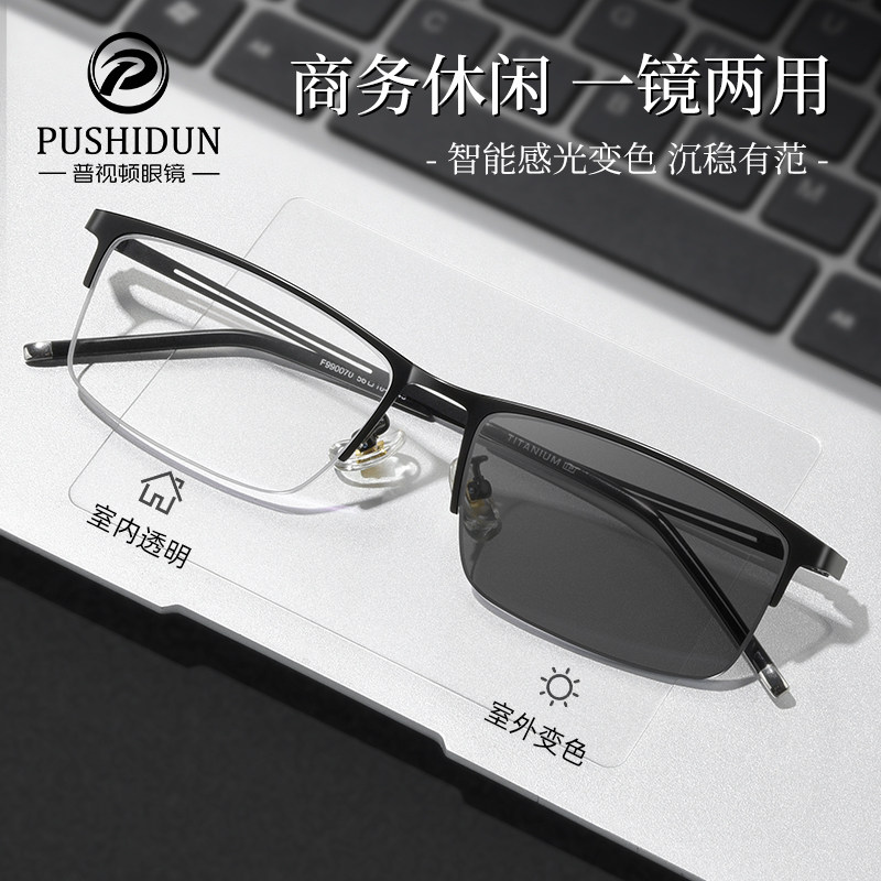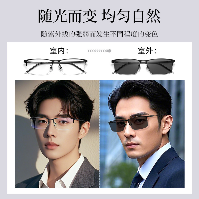 自动感光变色眼镜男款近视方框半框防蓝光抗辐射可配度数平光男士