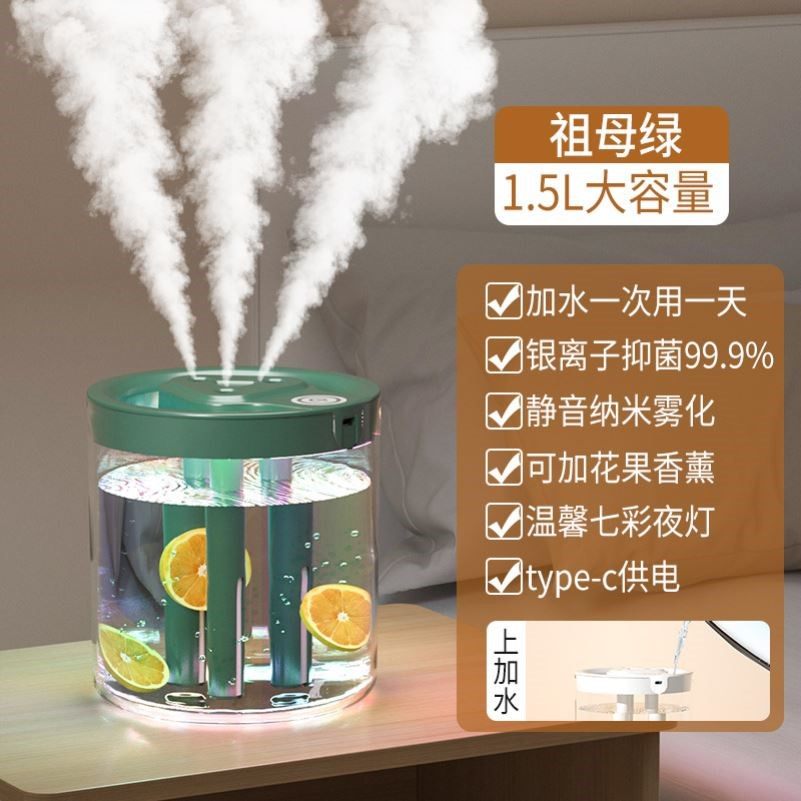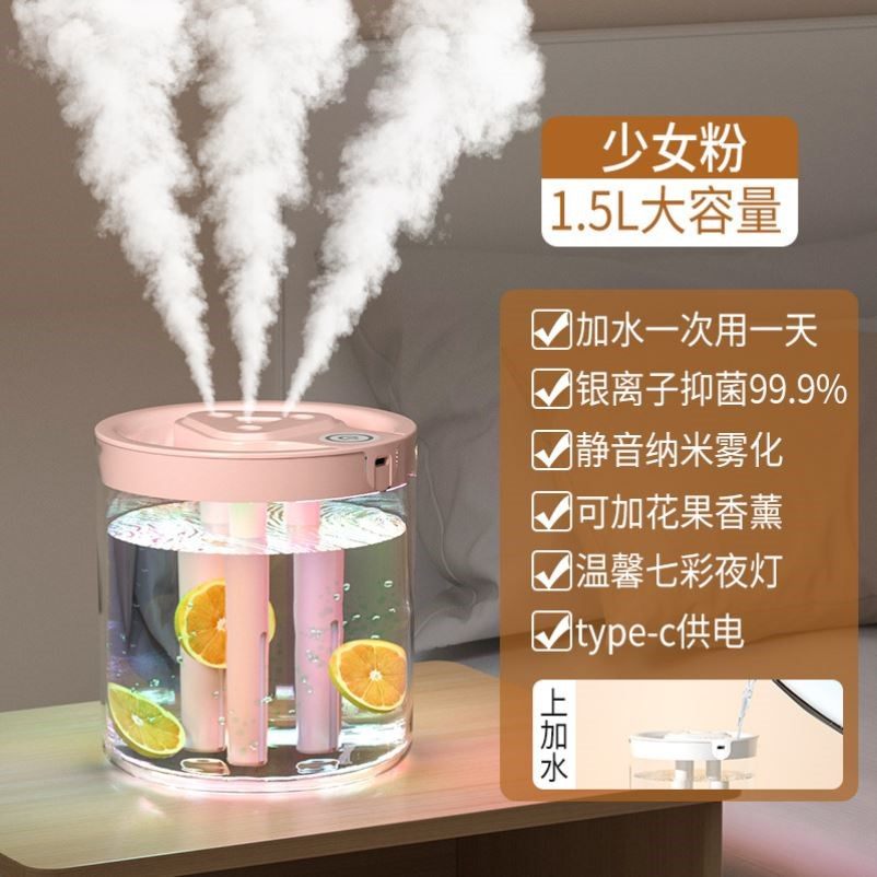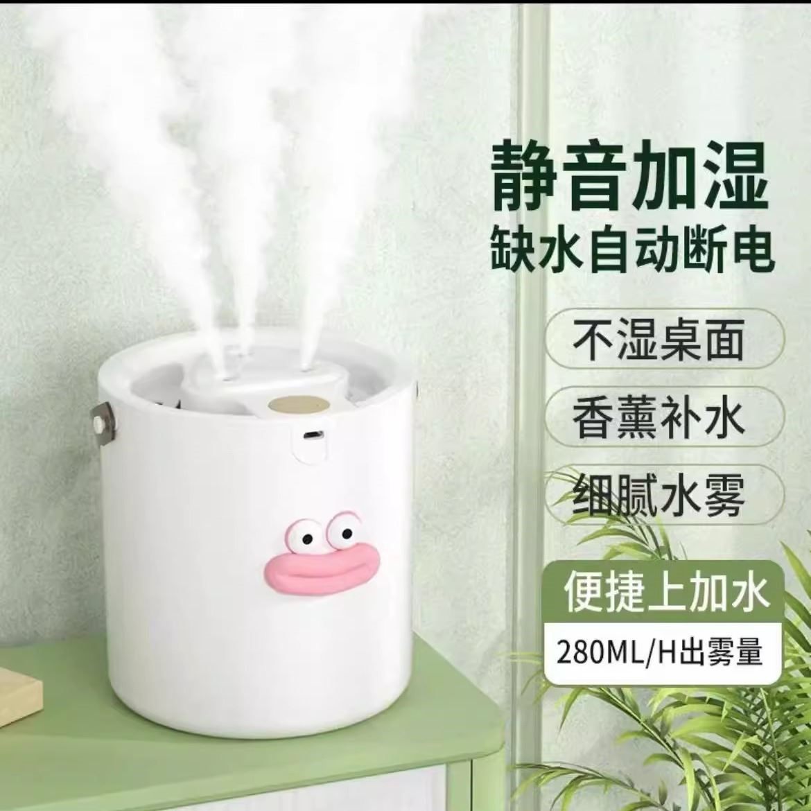 卡通空气加湿器三喷头大雾量家用卧室静音创意香薰小夜灯无水断电