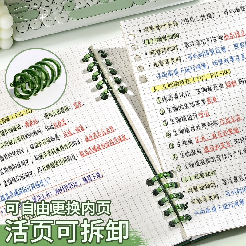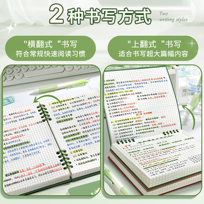 2025新款高颜值笔记本复古方形本网格笔记本本子上翻方格活页本初中高中生可拆卸活页纸错题本考研记事本
