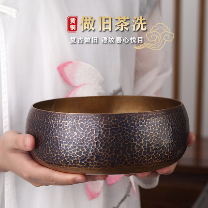 黄铜锤纹茶洗高档大号茶洗缸