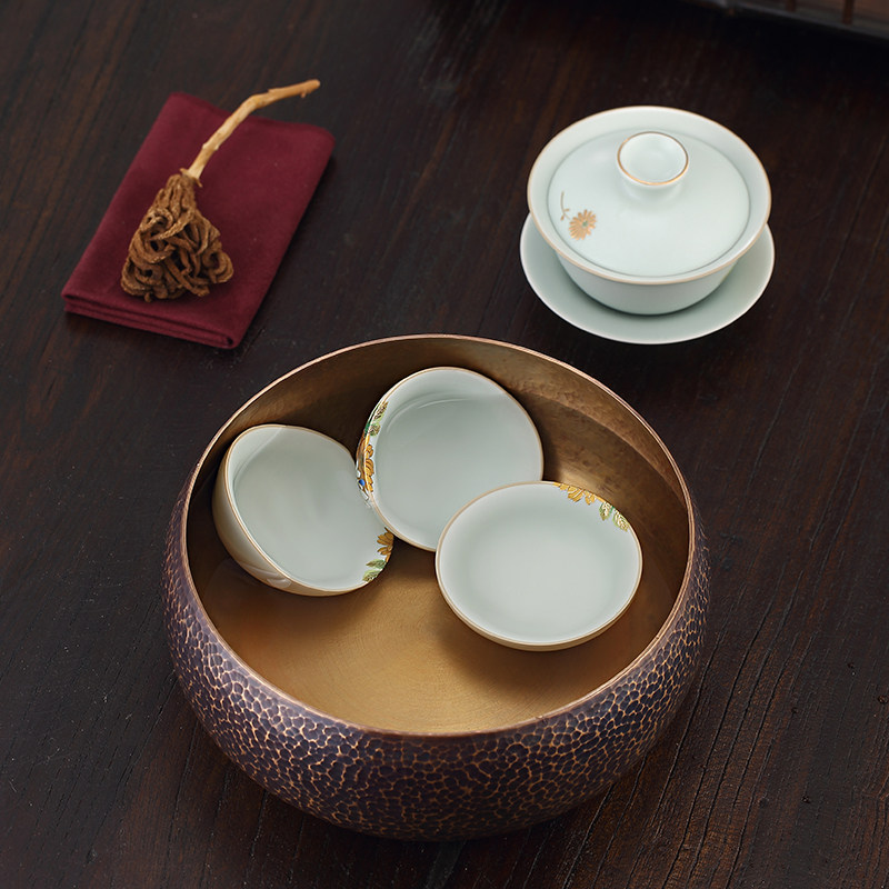紫铜茶洗高档中式大号茶洗缸手工水盂茶具配件茶杯茶碗建水收纳盆