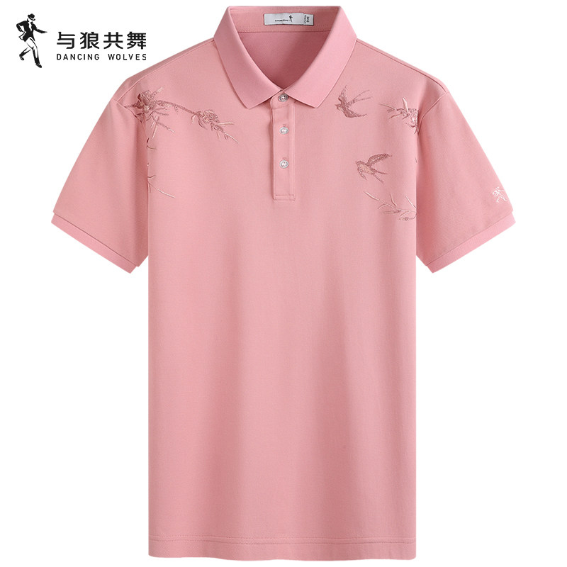 【索罗娜】与狼共舞翻领短袖T恤男士2025夏季新款刺绣休闲Polo衫
