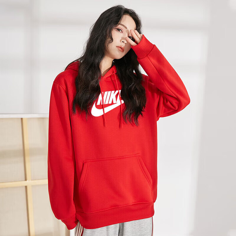 红色连帽卫衣Nike耐克正品针织运动外套女2025新款套头衫新年上衣