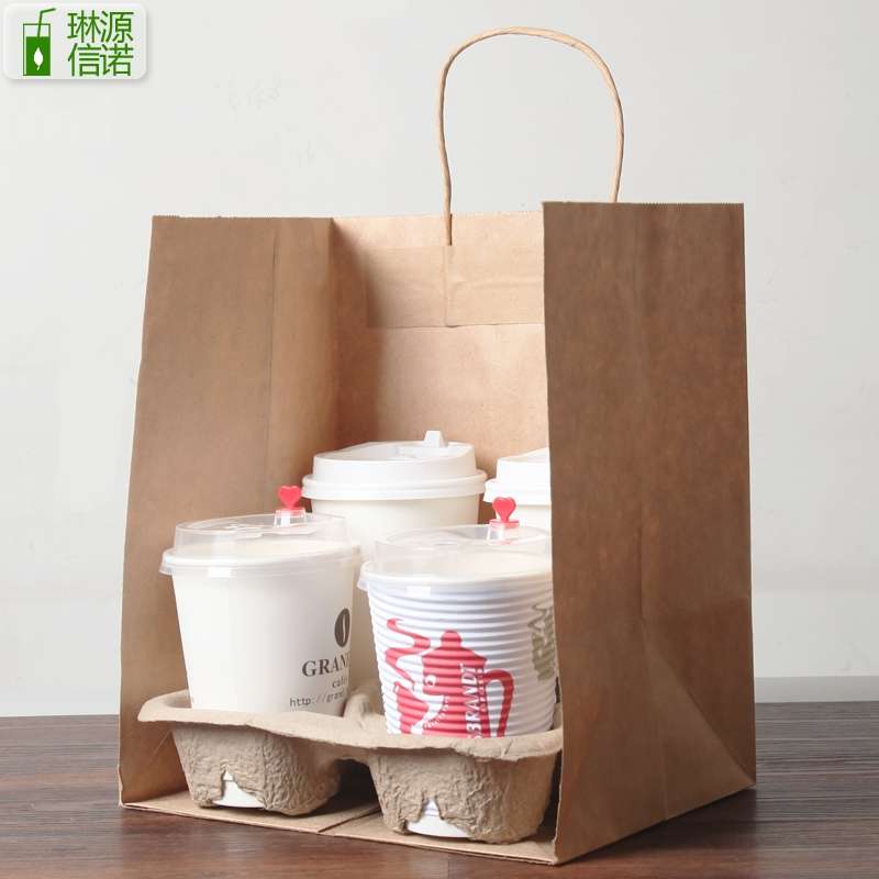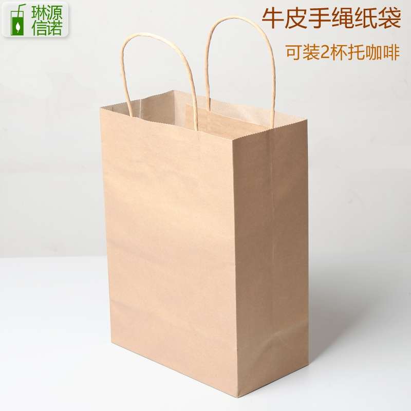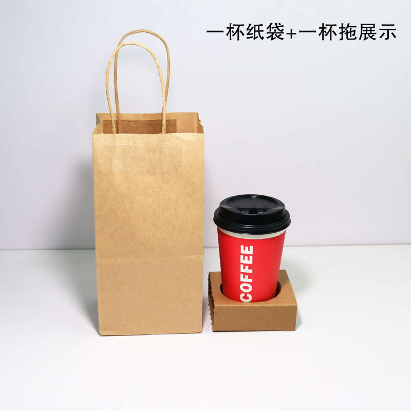 外卖打包纸袋食品手提牛皮纸袋包装袋咖啡奶茶纸杯打包袋 100个